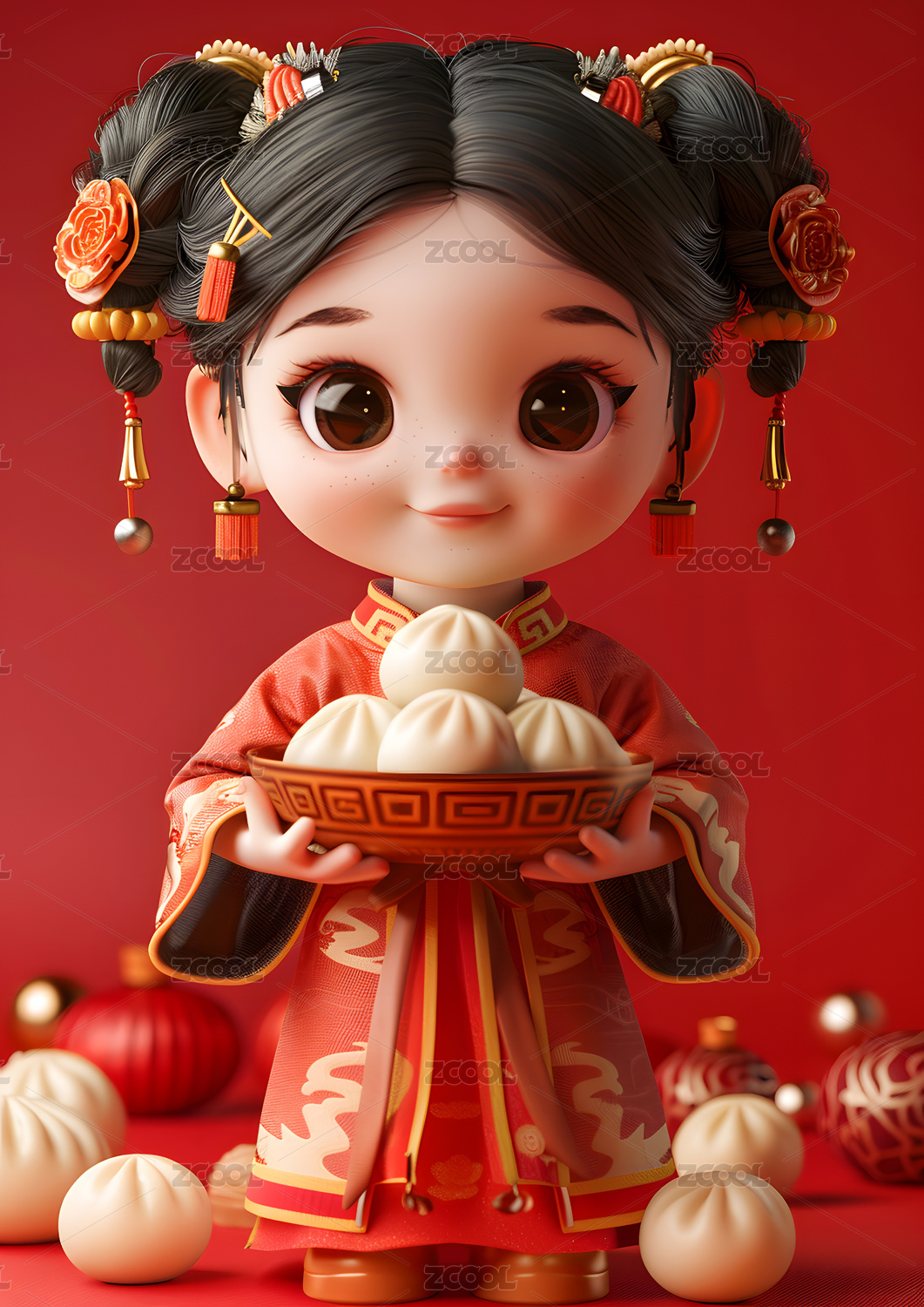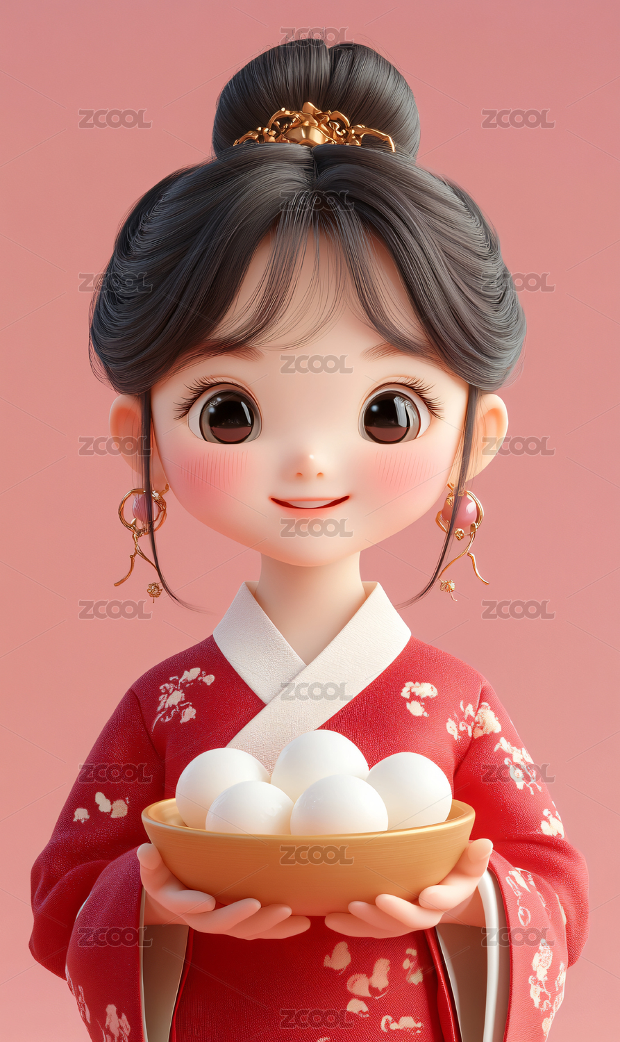 儿童,3D,汤圆,元宵,元宵节,立冬,春节,人,C4D,卡通