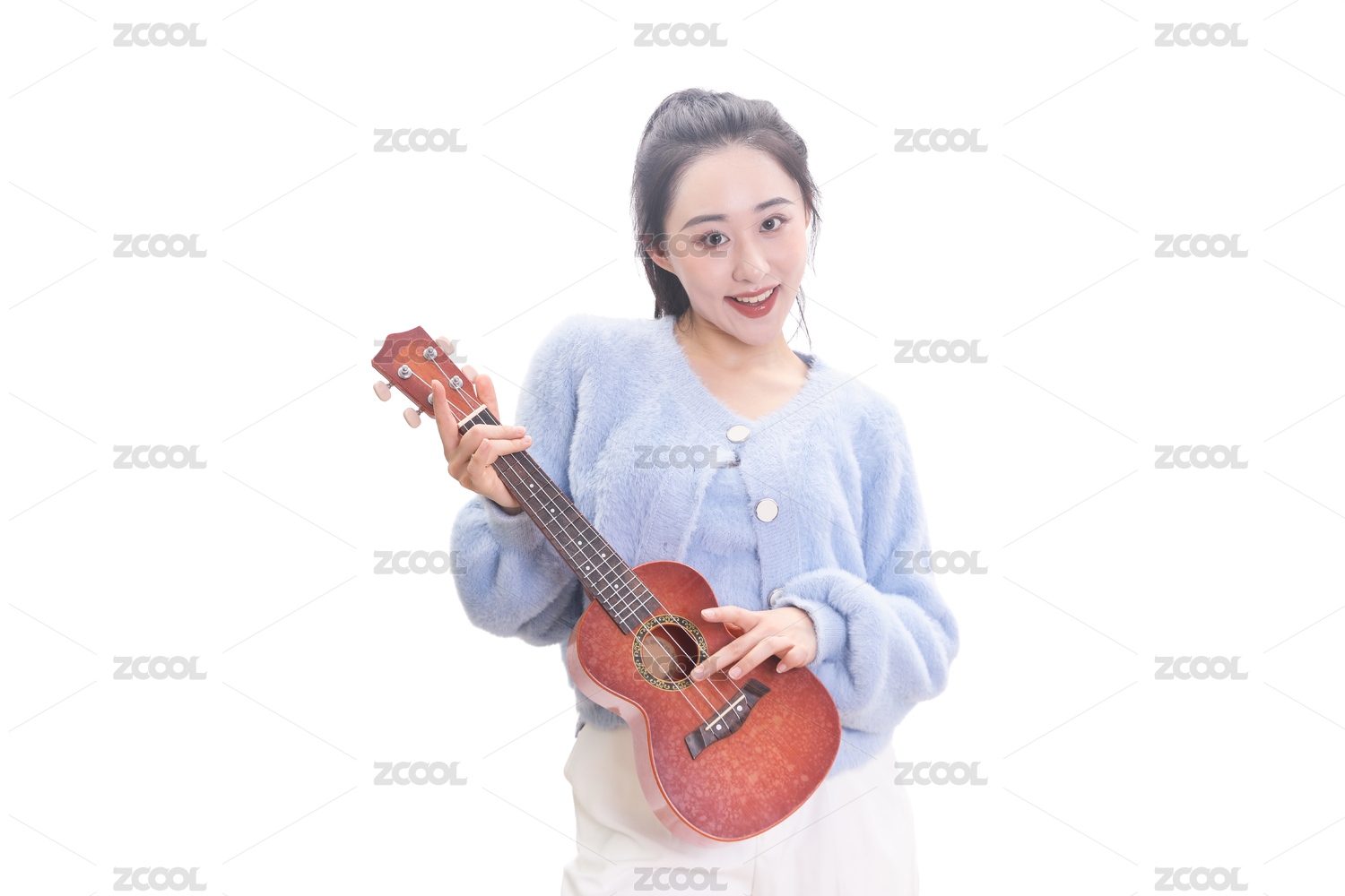 穿着时尚拿着尤里克克乐器的东方女性半身肖