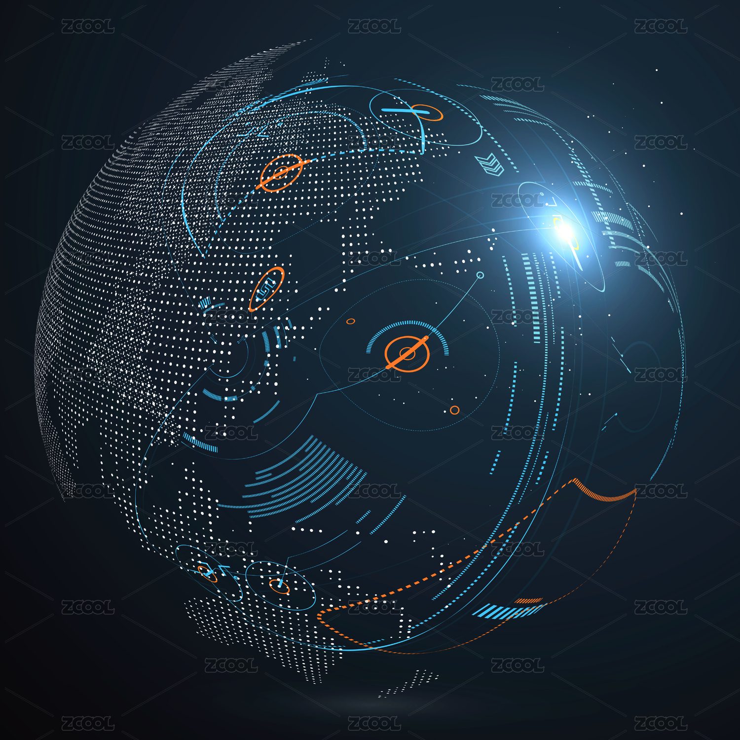 未来科技、全球化界面、科技背景图片、抽象图形、三维立体球。