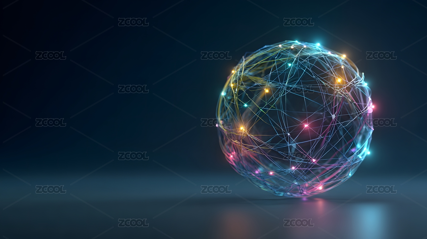 点和曲线组成的球形线框,抽象矢量背景图,科技背景