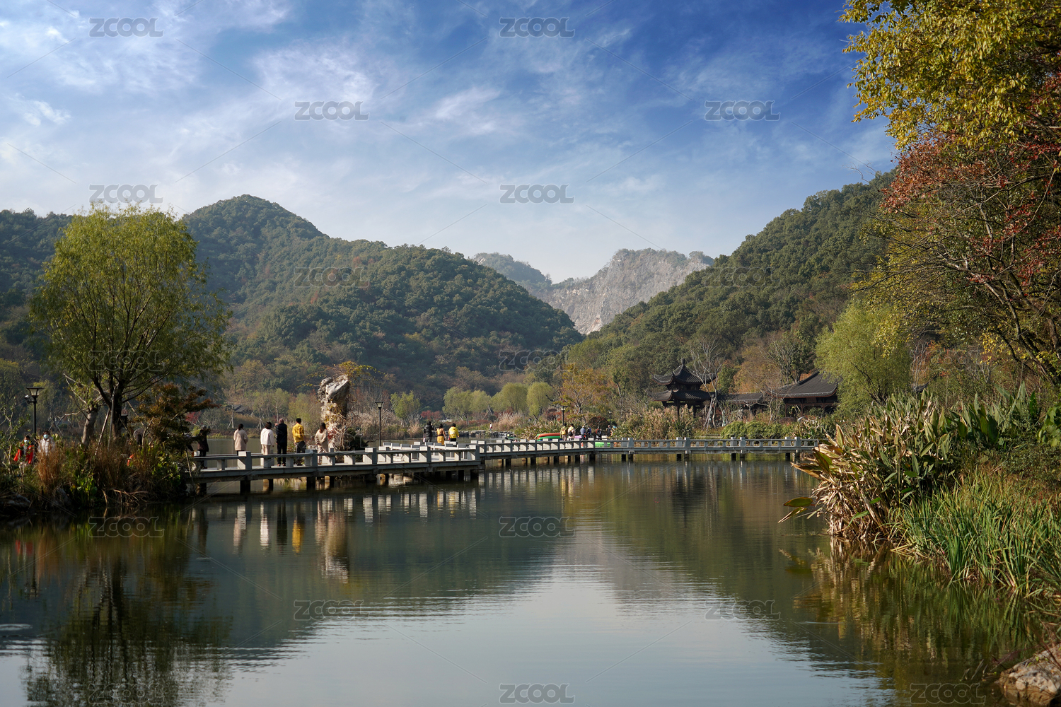 中国江苏苏州天平山溪流湖塘山川红叶慢门拍摄景观