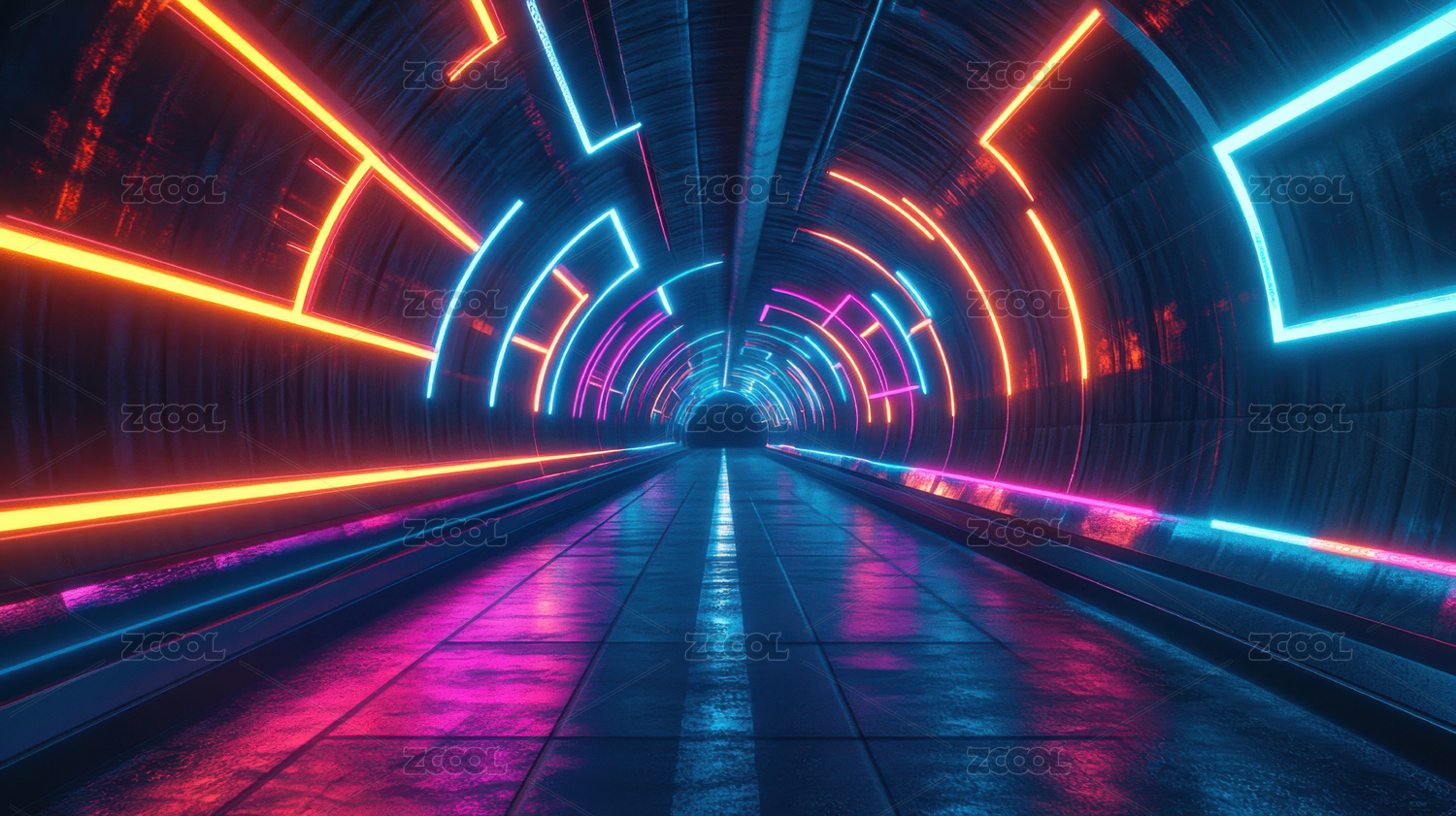 地下通道和霓虹灯光,赛博朋克科技感背景