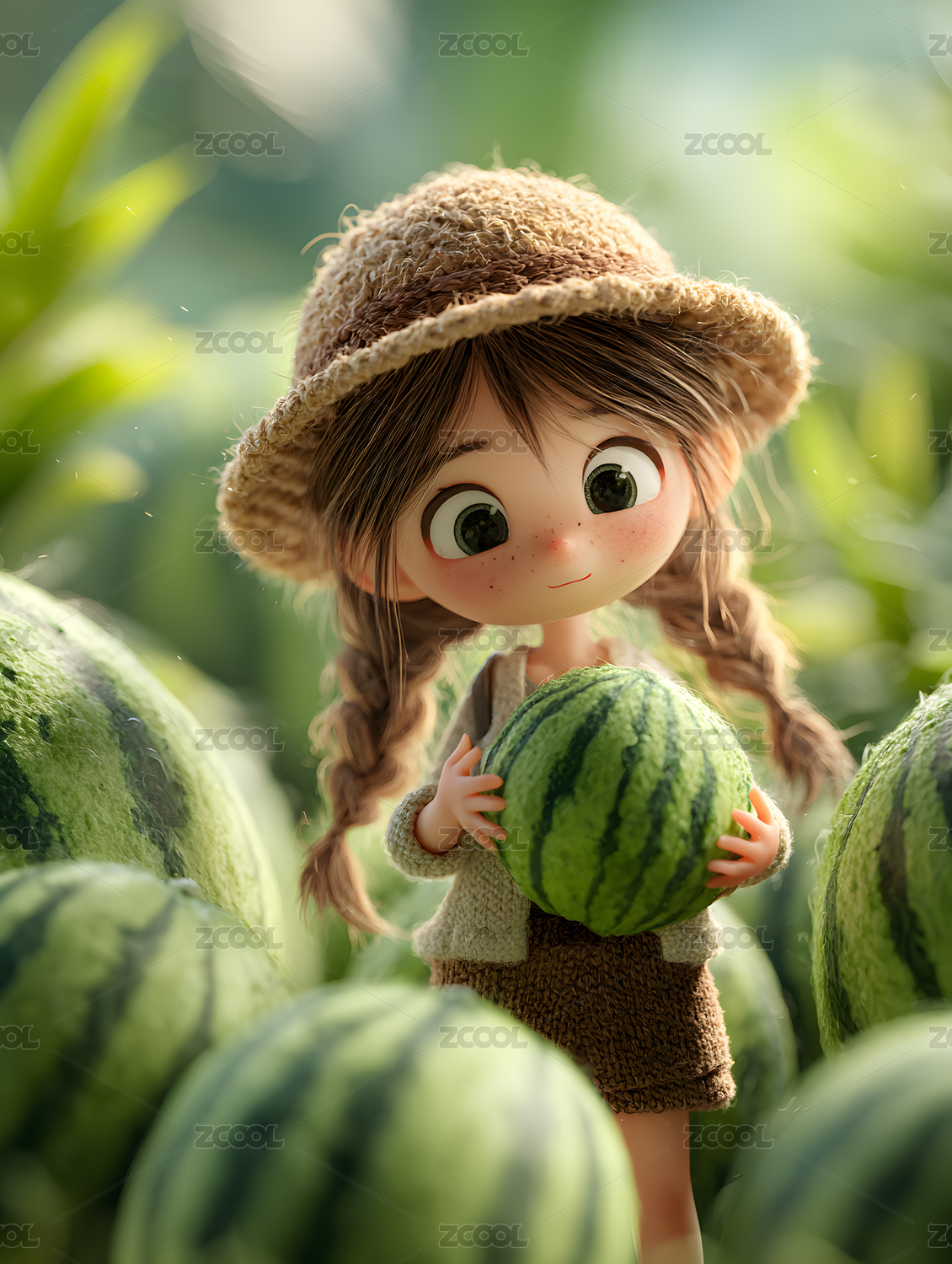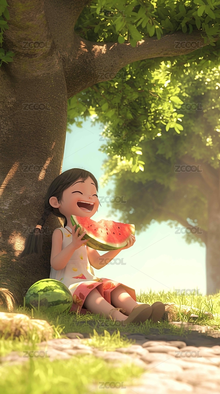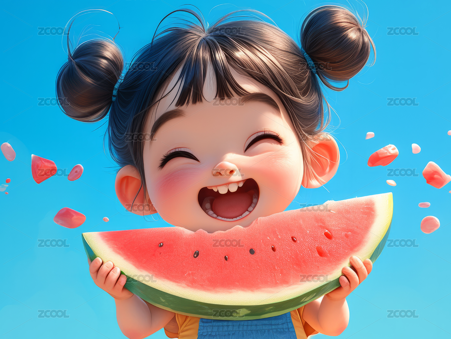 西瓜,吃瓜,夏天,女孩,小女孩,卡通,快乐,夏季,节气,节日