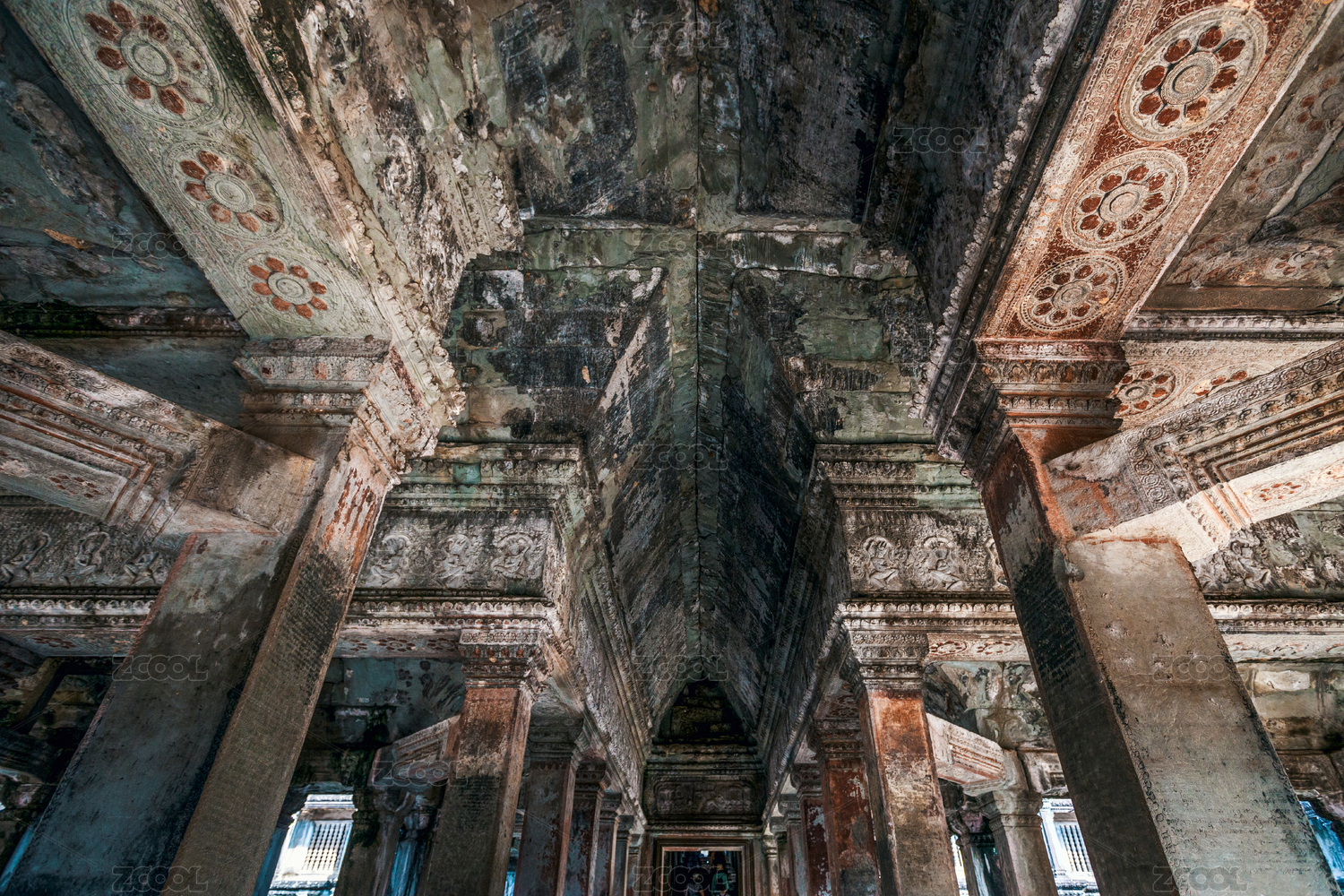 柬埔寨吴哥窟深邃的多层廊道门洞