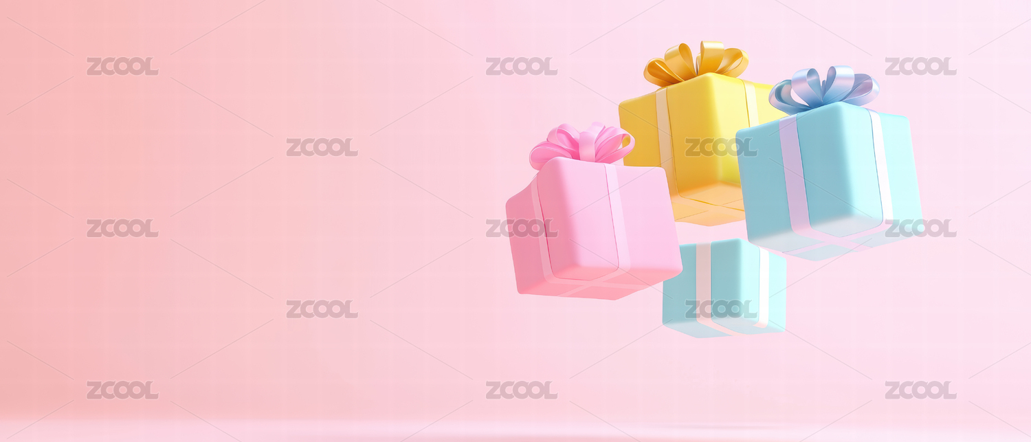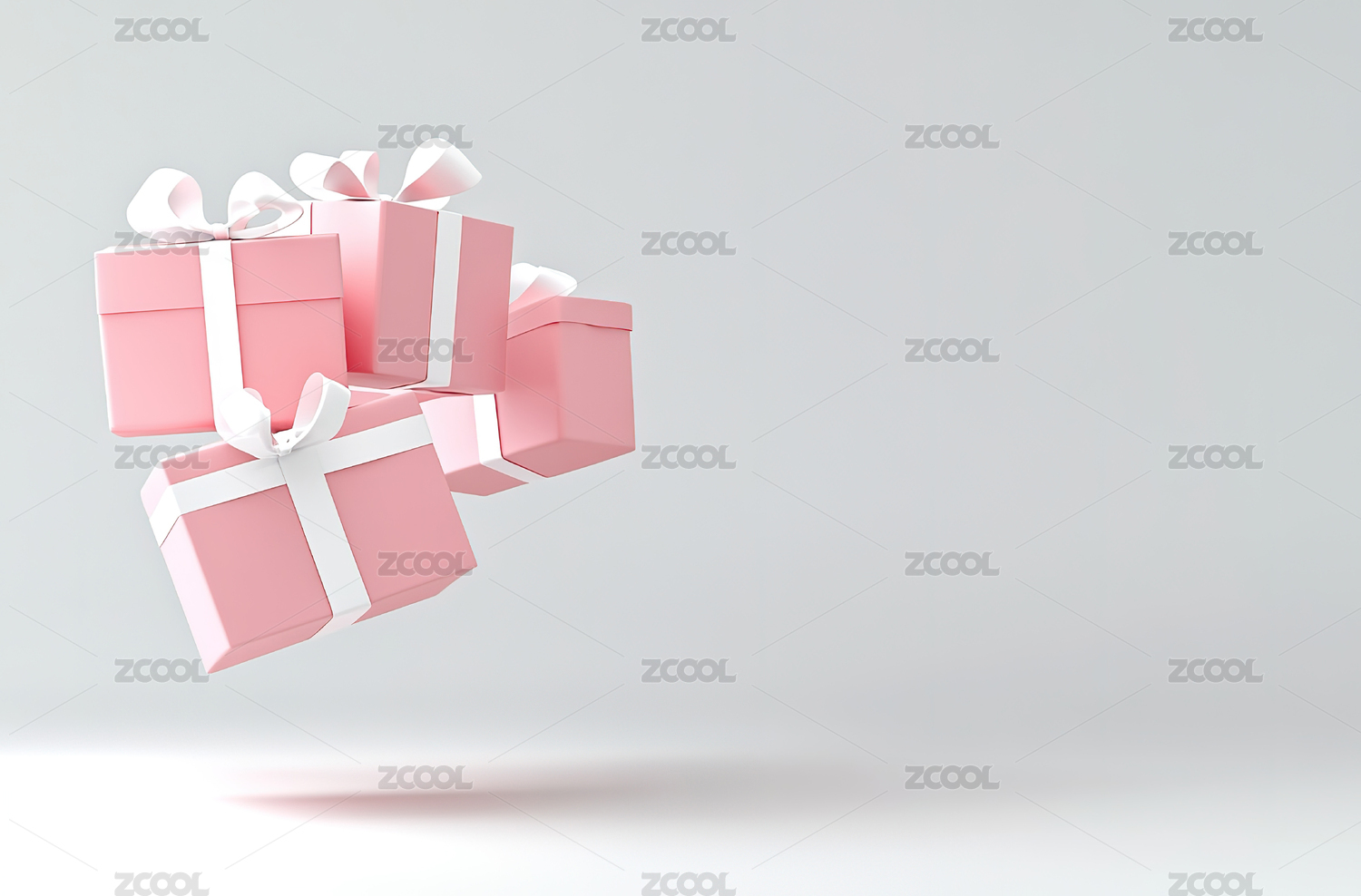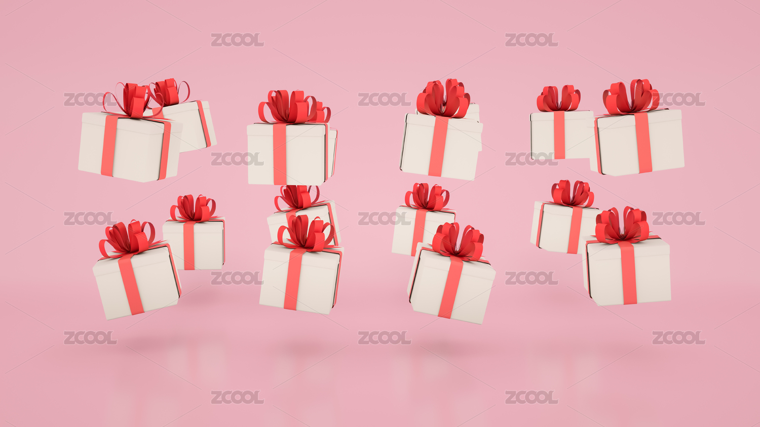浅色系千禧粉背景下,放置着礼物礼盒,情人节快乐