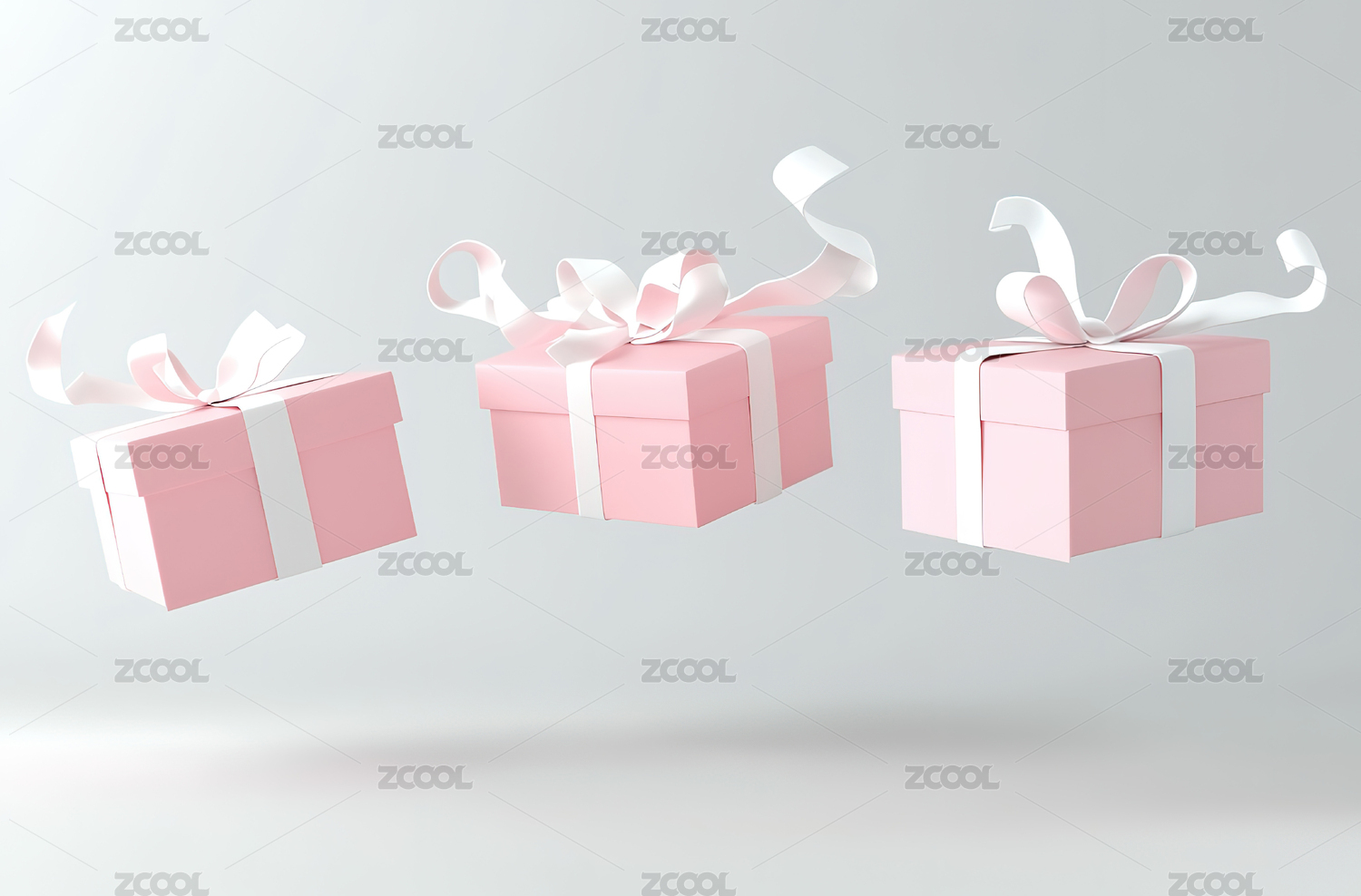 粉色礼盒礼物丝带装饰的礼物盒 3d渲染