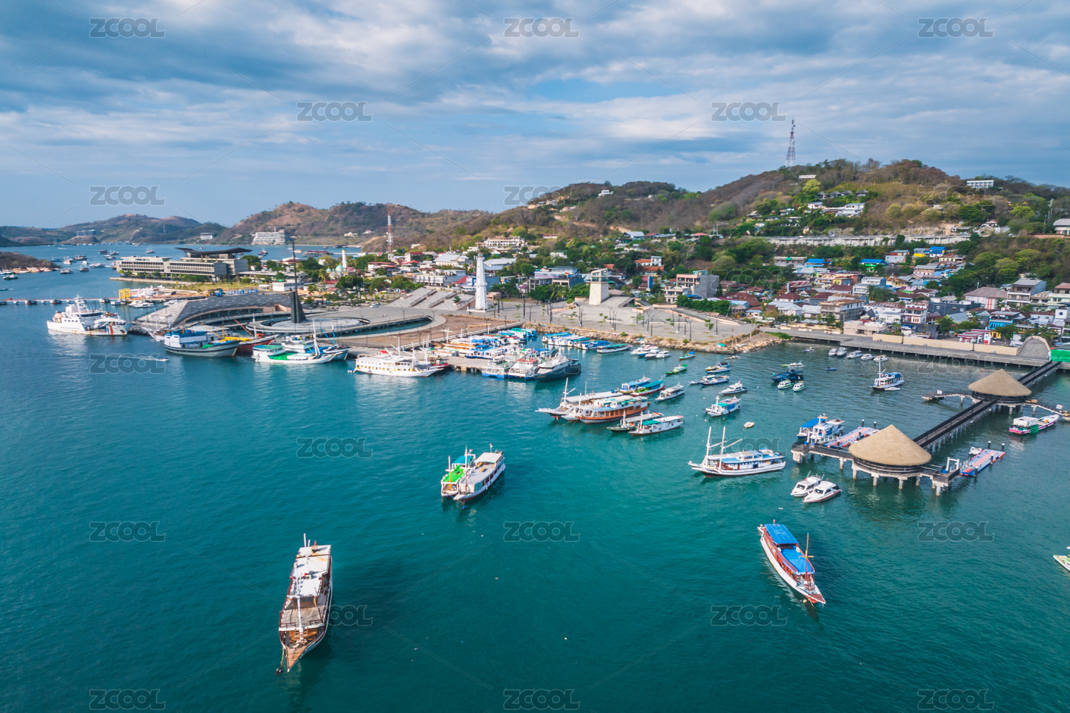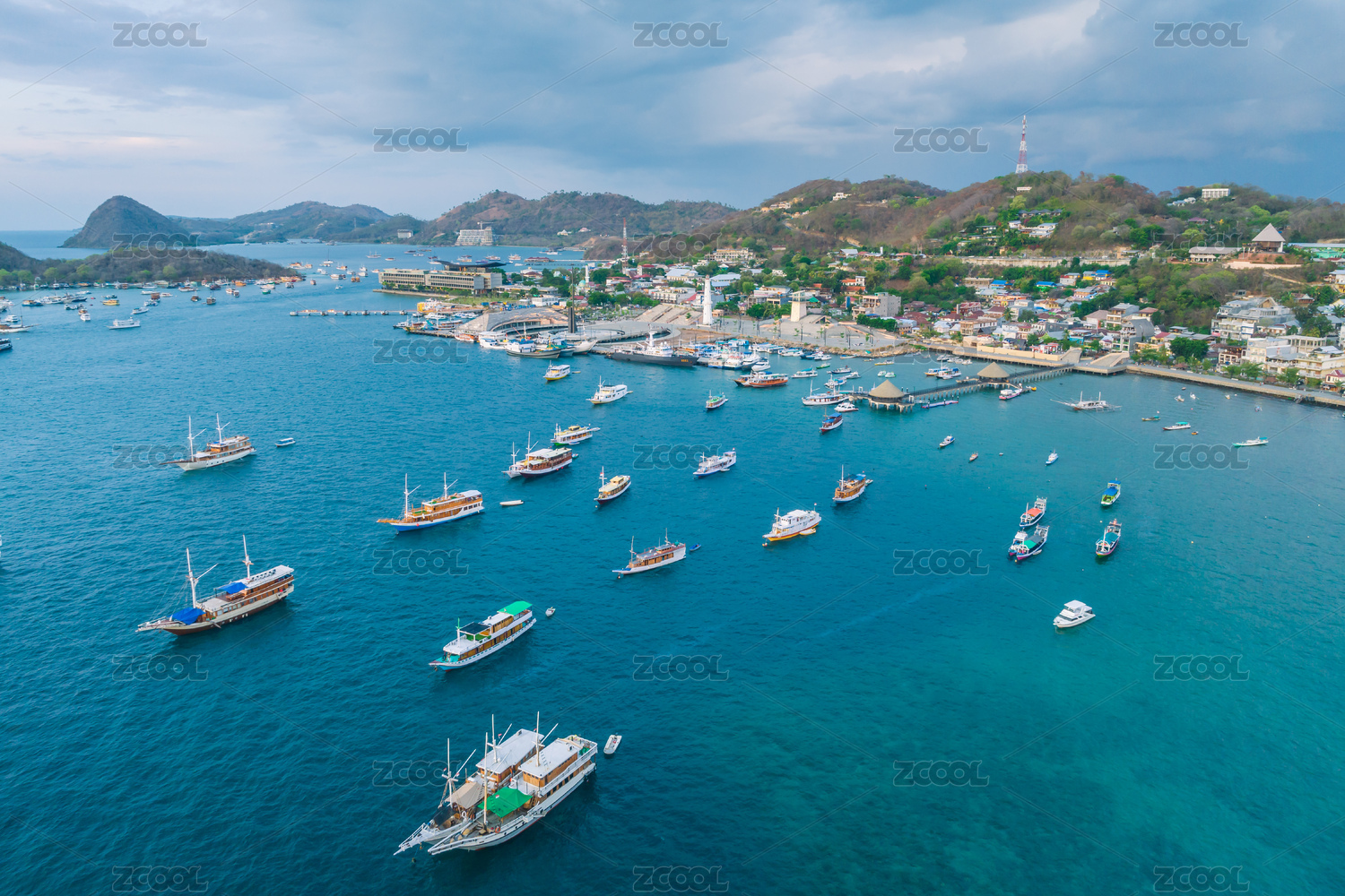 印度尼西亚科莫多拉布汉巴焦海上船舶航拍风