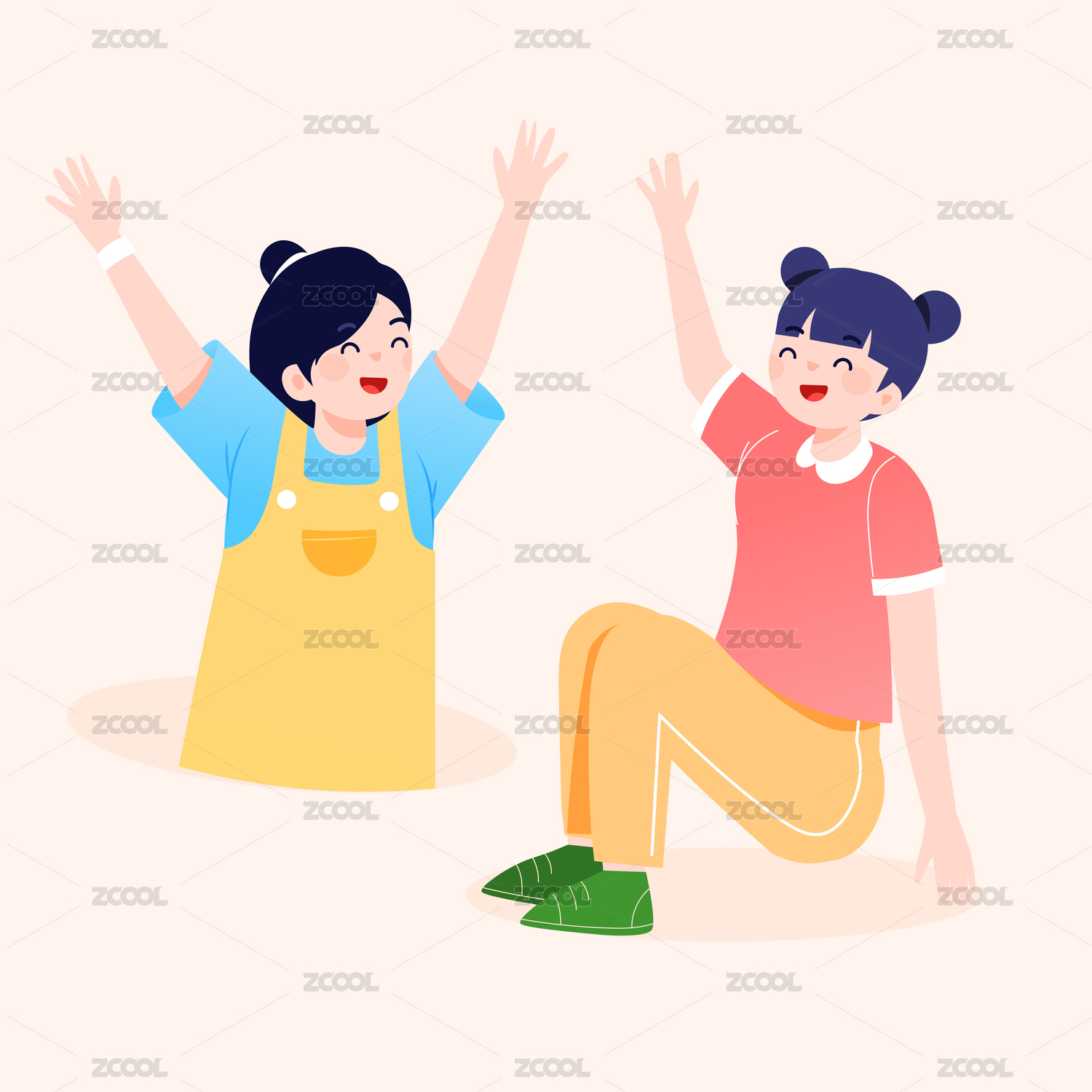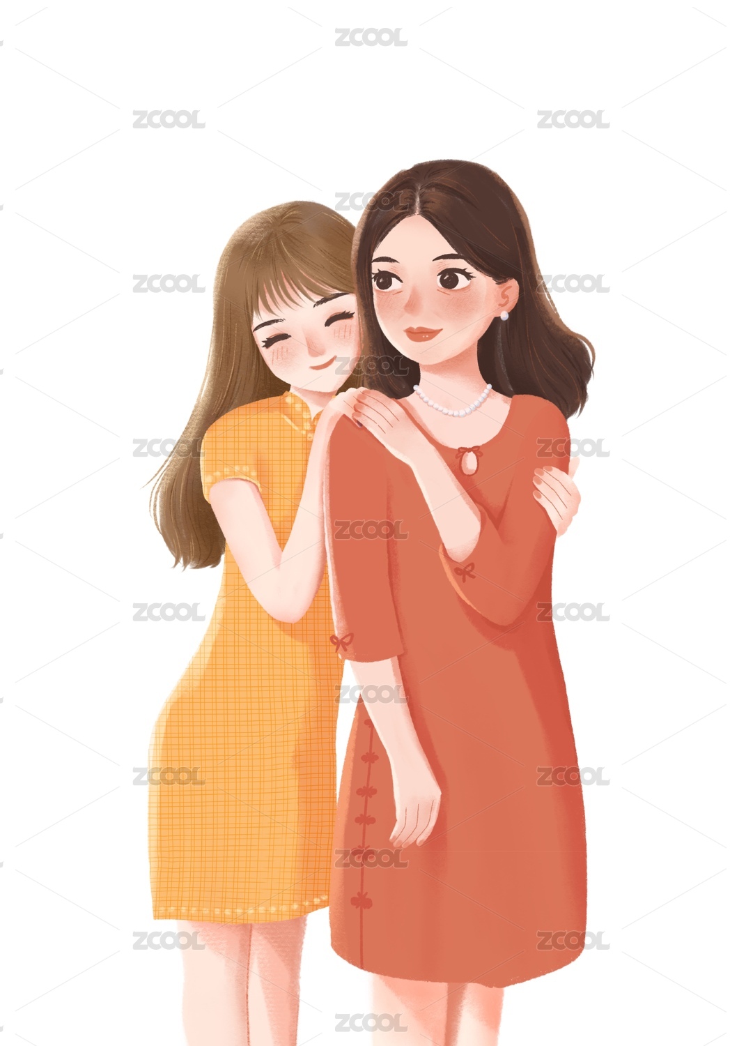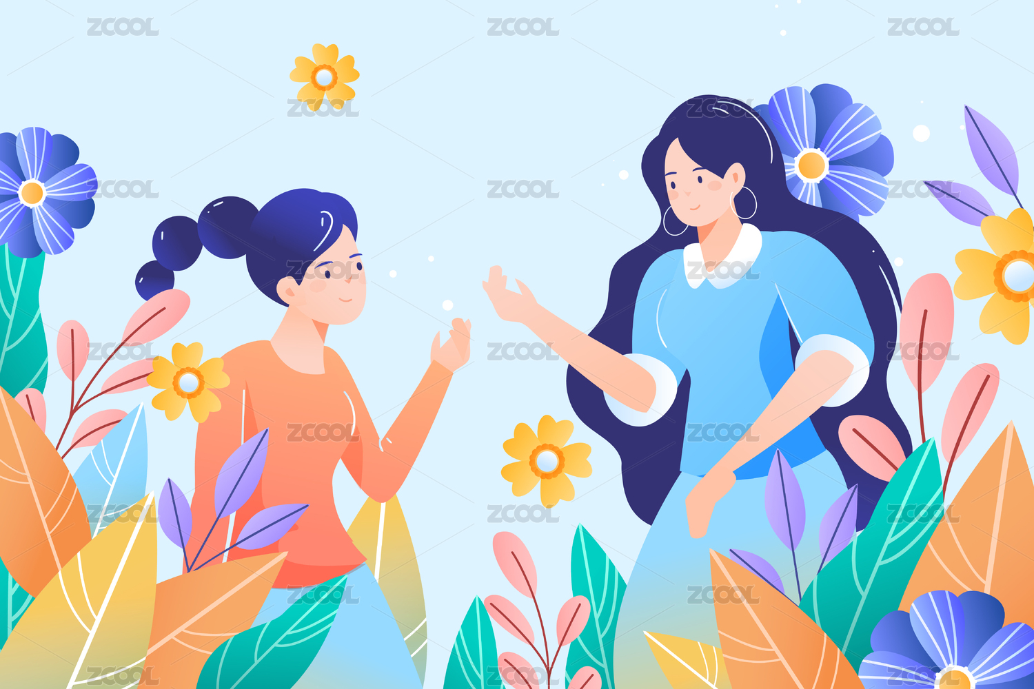 感恩母亲节献花给妈妈插画女孩手捧鲜花海报