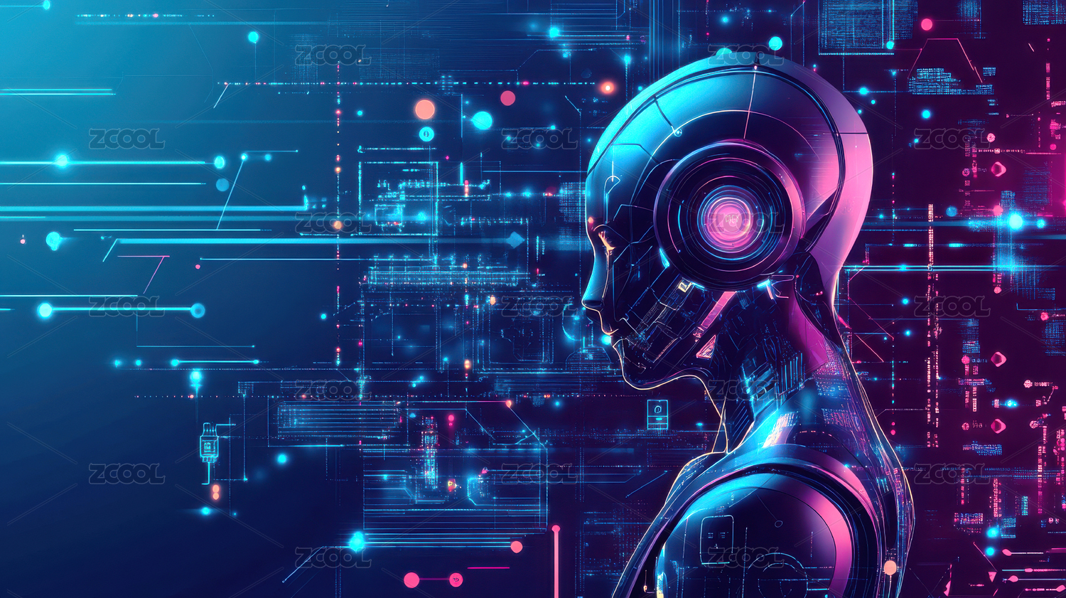 机器人,机器,虚拟,智能机器人,场景,渲染,简约,光效,现代