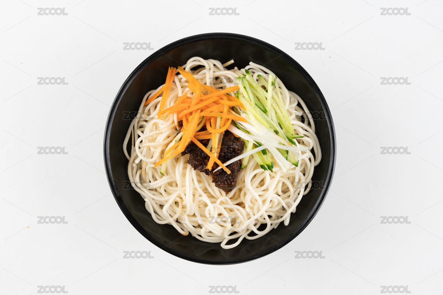 白背景下的一碗老北京炸酱面