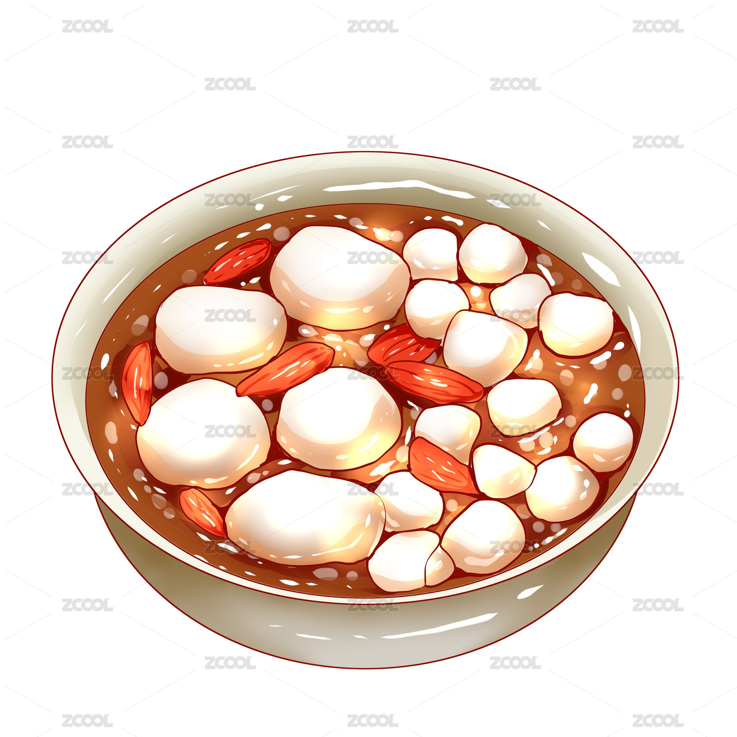 红色水彩写实冬至汤圆一碗红豆红枣汤水饺