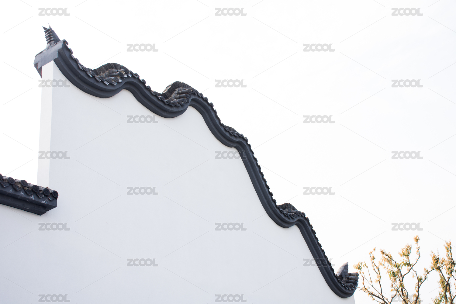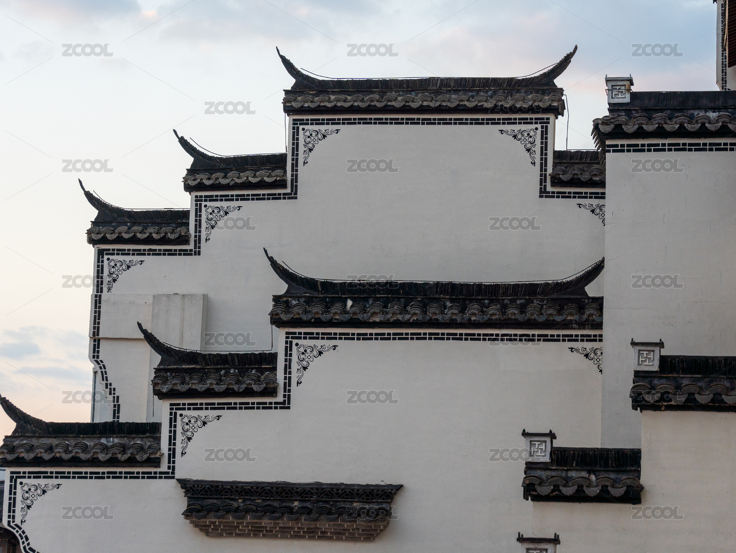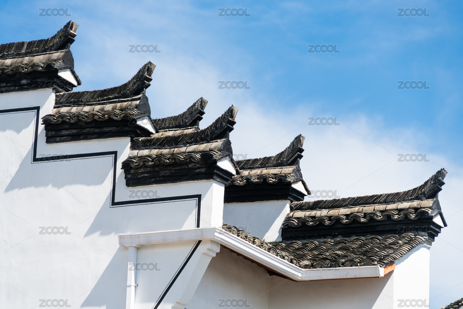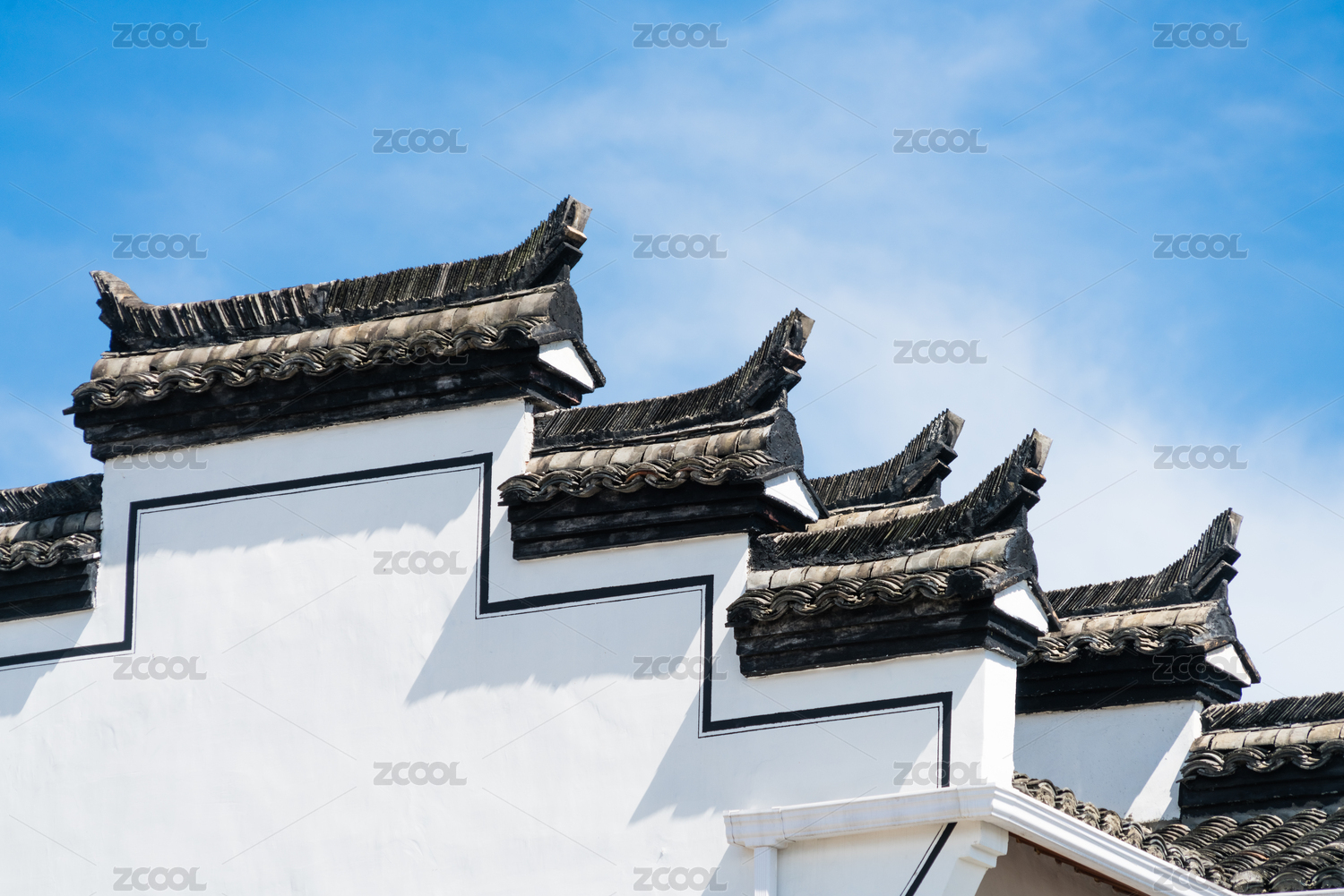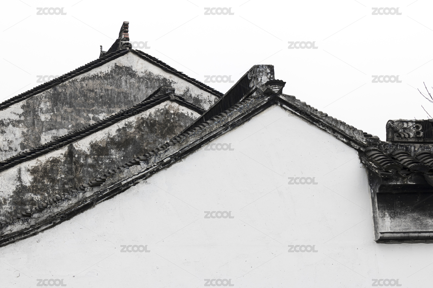 古镇古建青砖黛瓦黑白马头墙屋檐