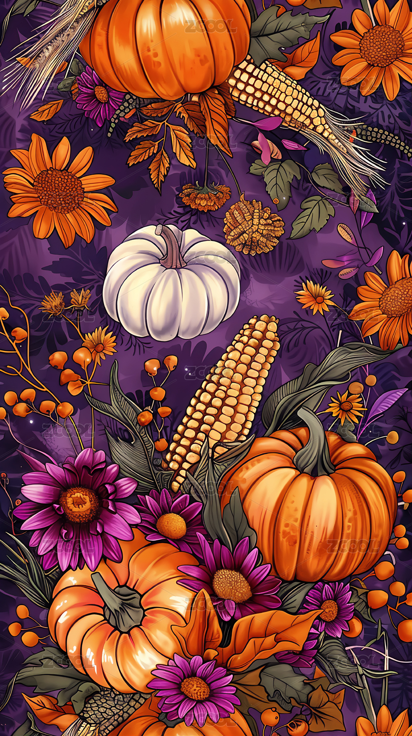 感恩节玉米和南瓜插画背景