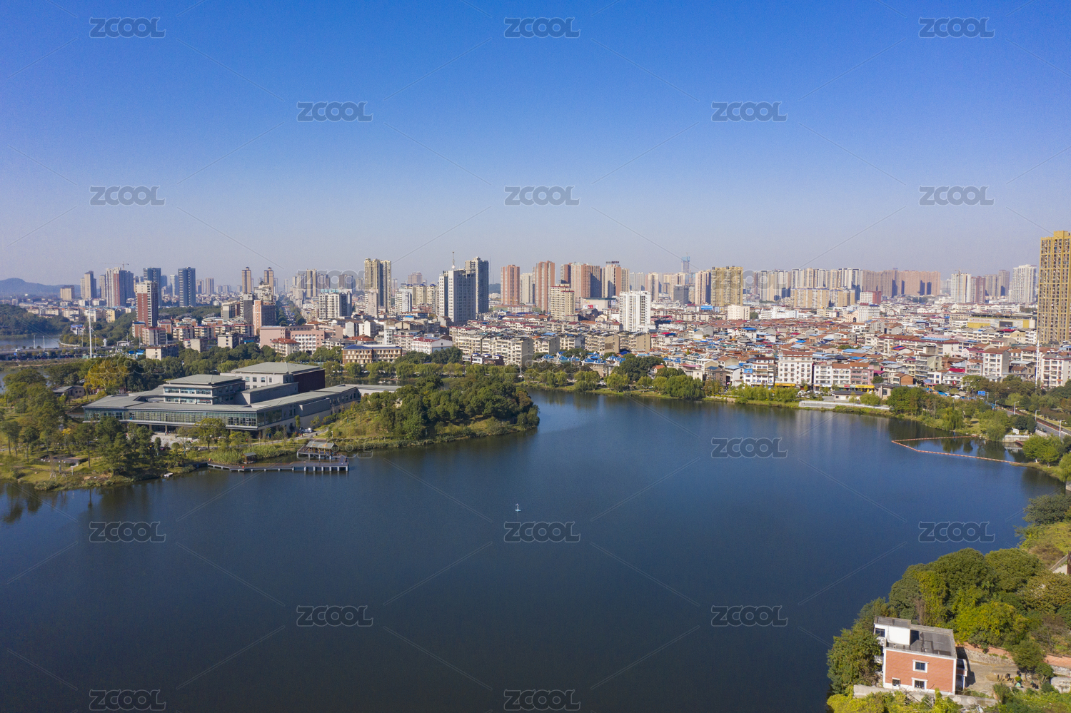 航拍海南海口红城湖公园湖心岛人工岛小岛屿