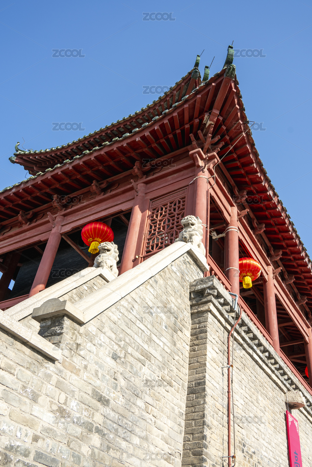 中国山西省长治市城隍庙古建筑上的红灯笼