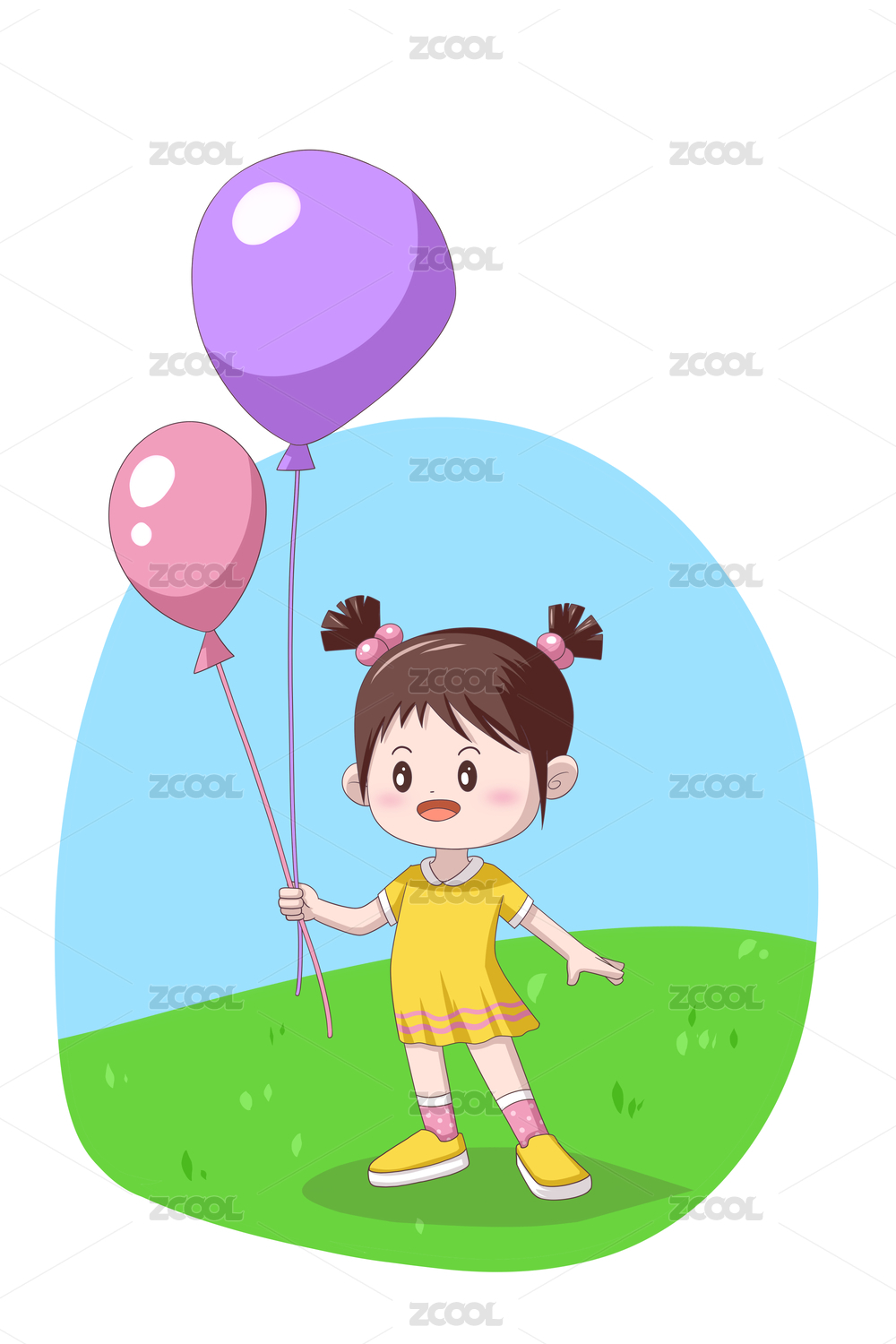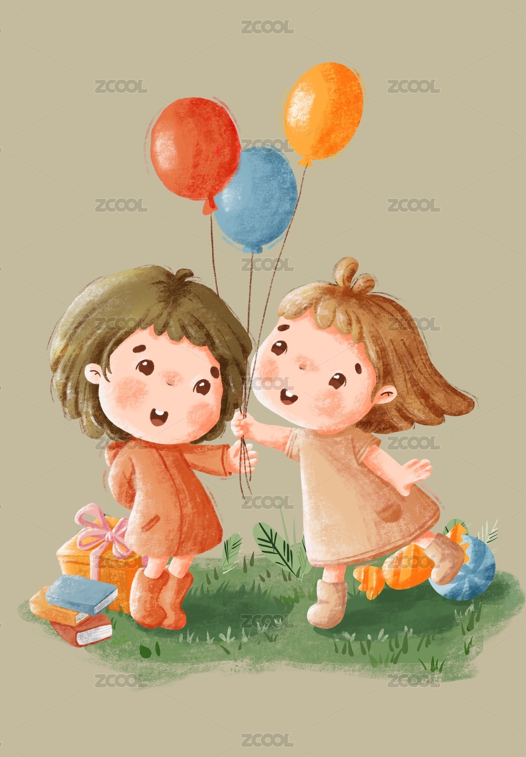 儿童节六一小朋友小孩子礼物插画玩耍梦想