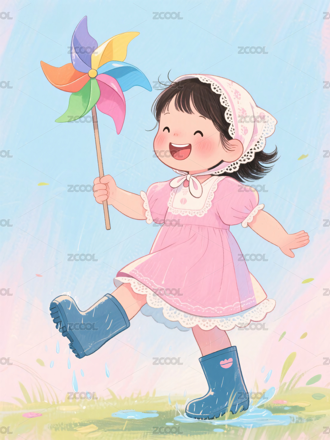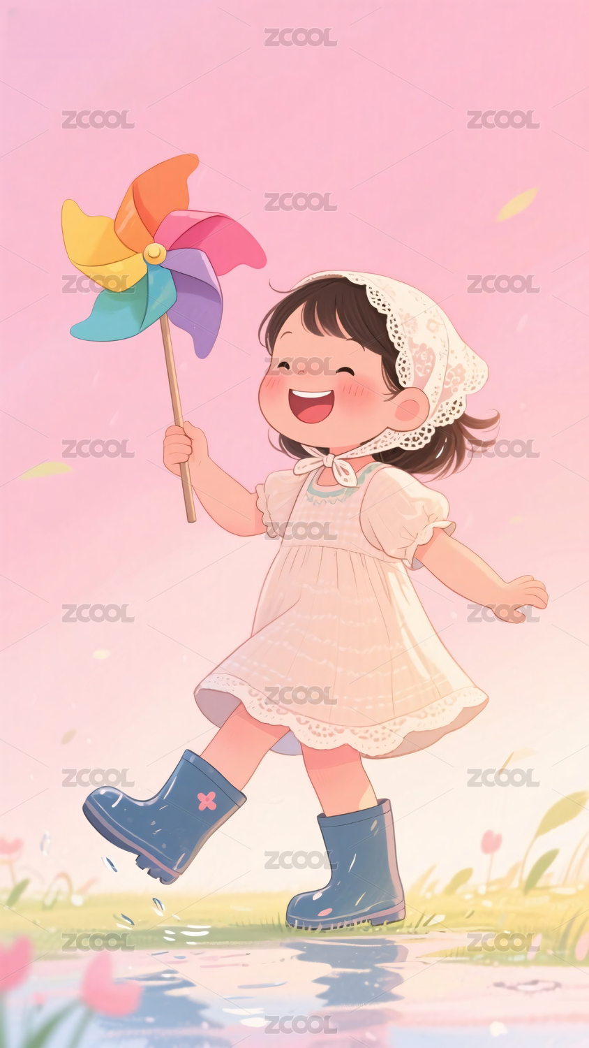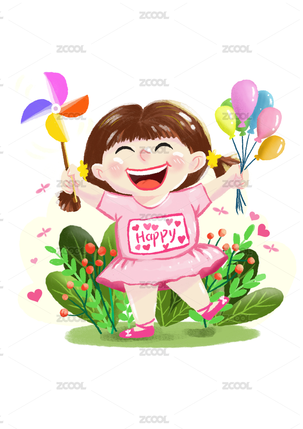 61,小女孩,大笑,可爱风,爱心,开心,快乐,草地,儿童节,风车