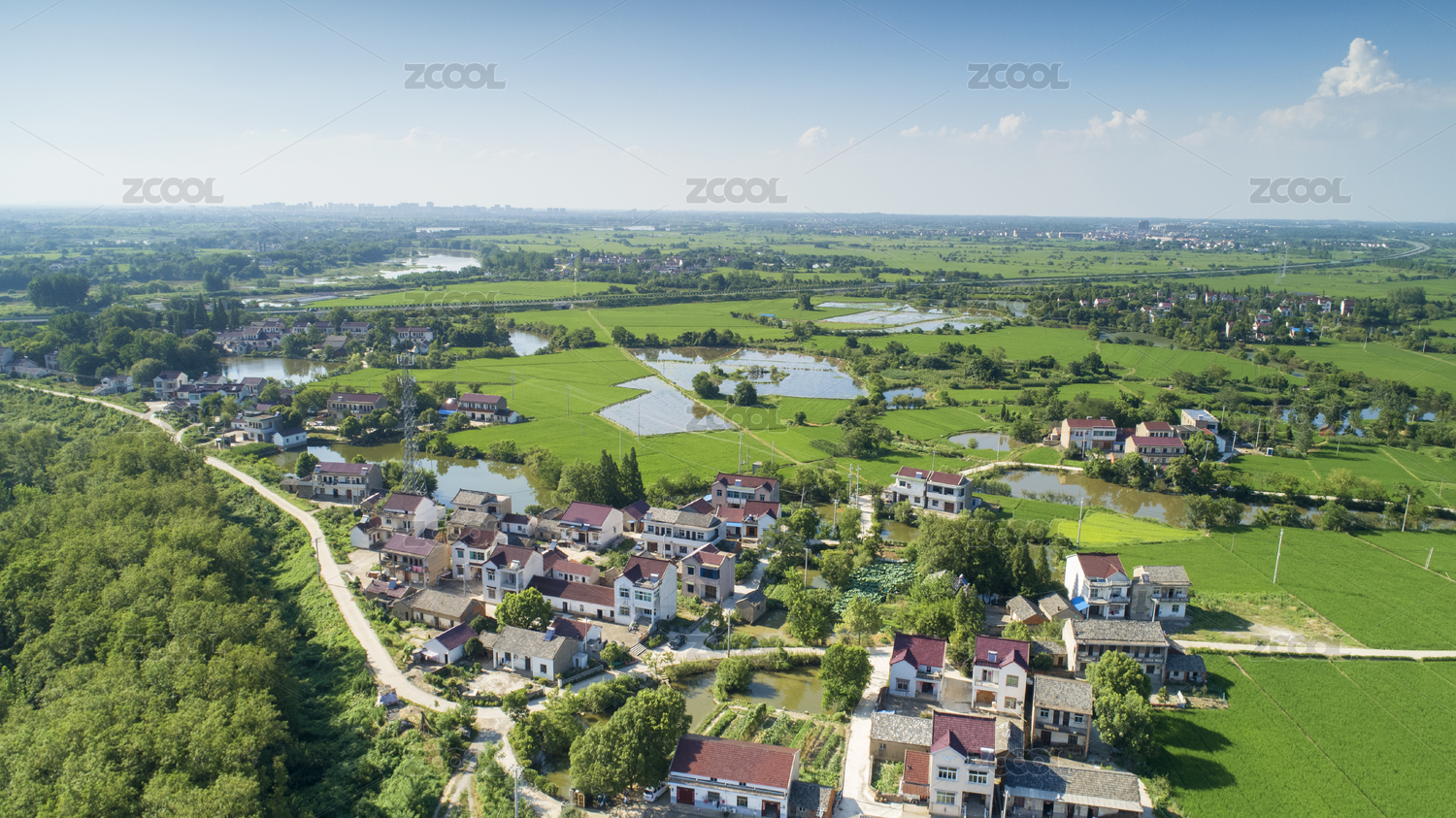 航拍中国安徽省郎溪县现代农业示范区夕阳下的田园风光