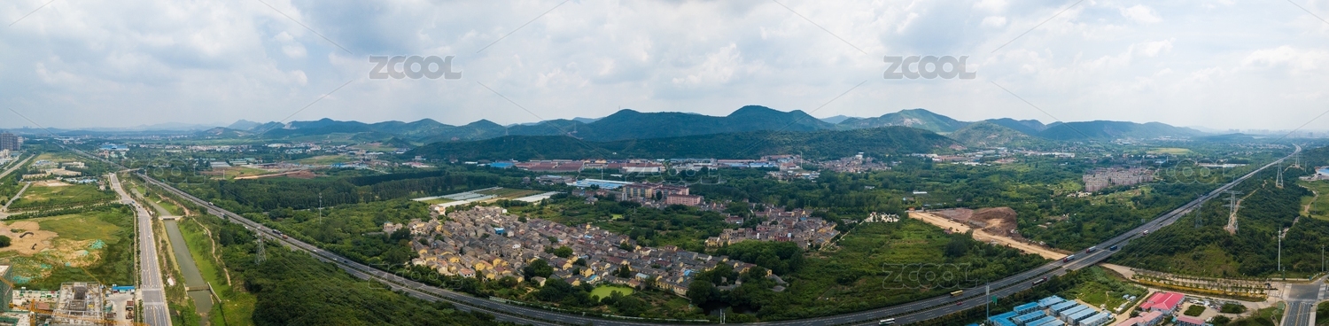 航拍杭州留下西穆坞村屏基山公园与居民区