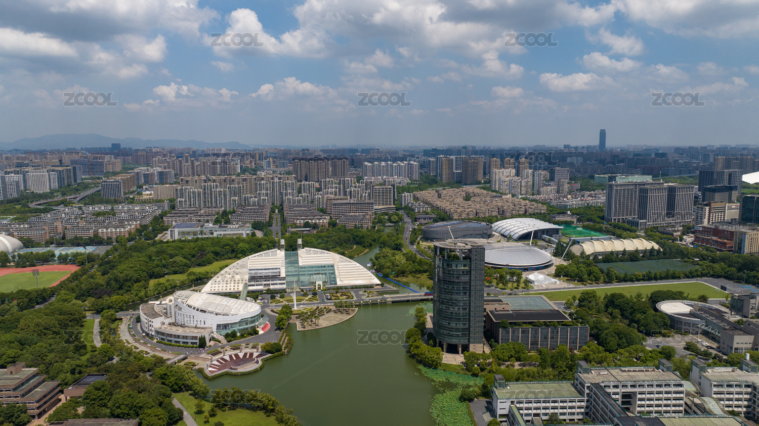 杭州,航拍视角,中国,天空,旅游目的地,夏天,浙江省,都市风景,城市,建筑