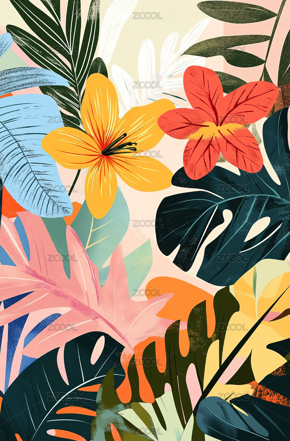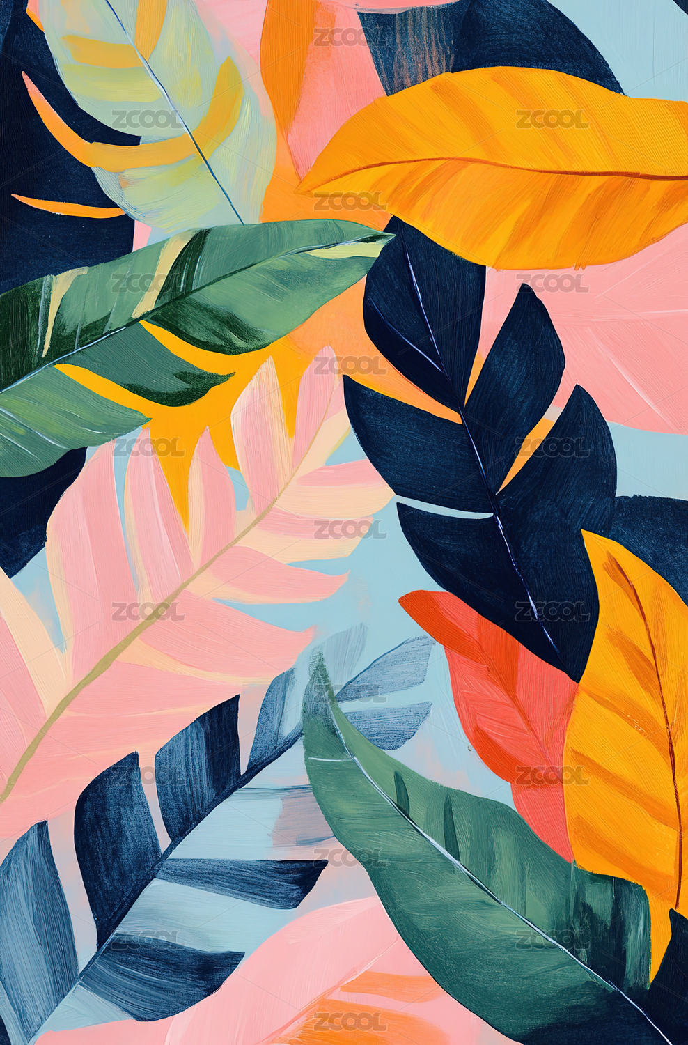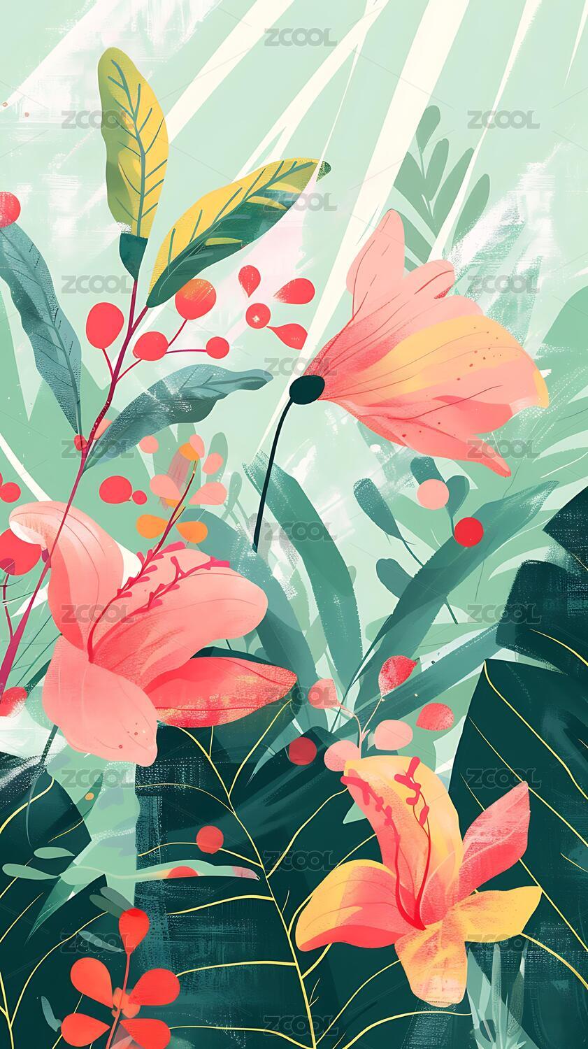 自然,夏天,AI数字艺术,植物学,装饰,壁纸,设计,叶子,插画