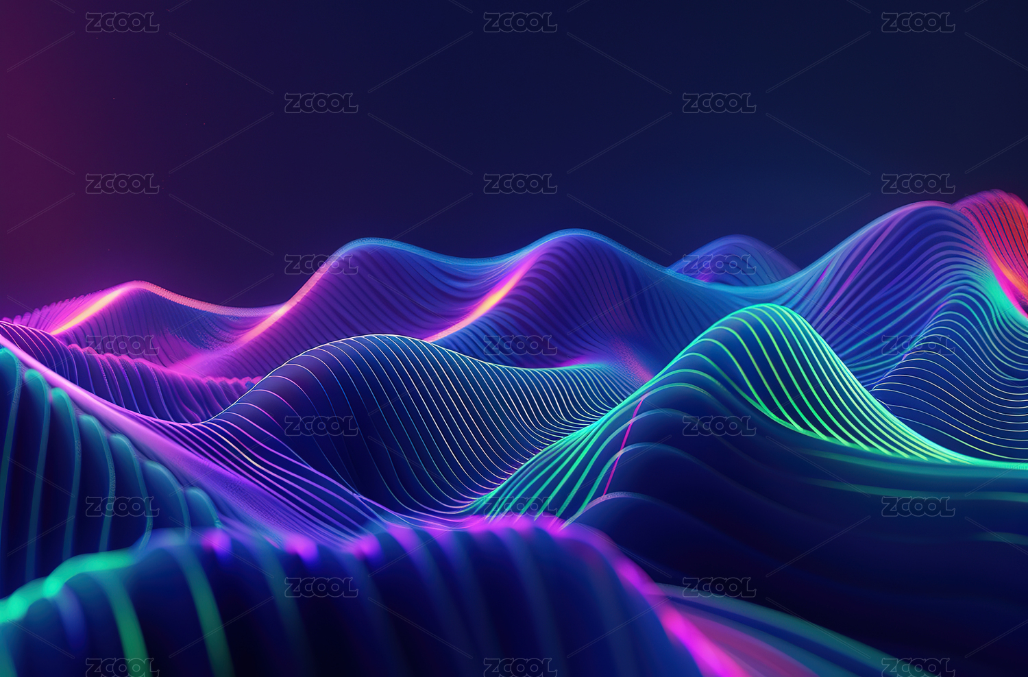 3D渲染波浪线条抽象kv主视觉PPT背景