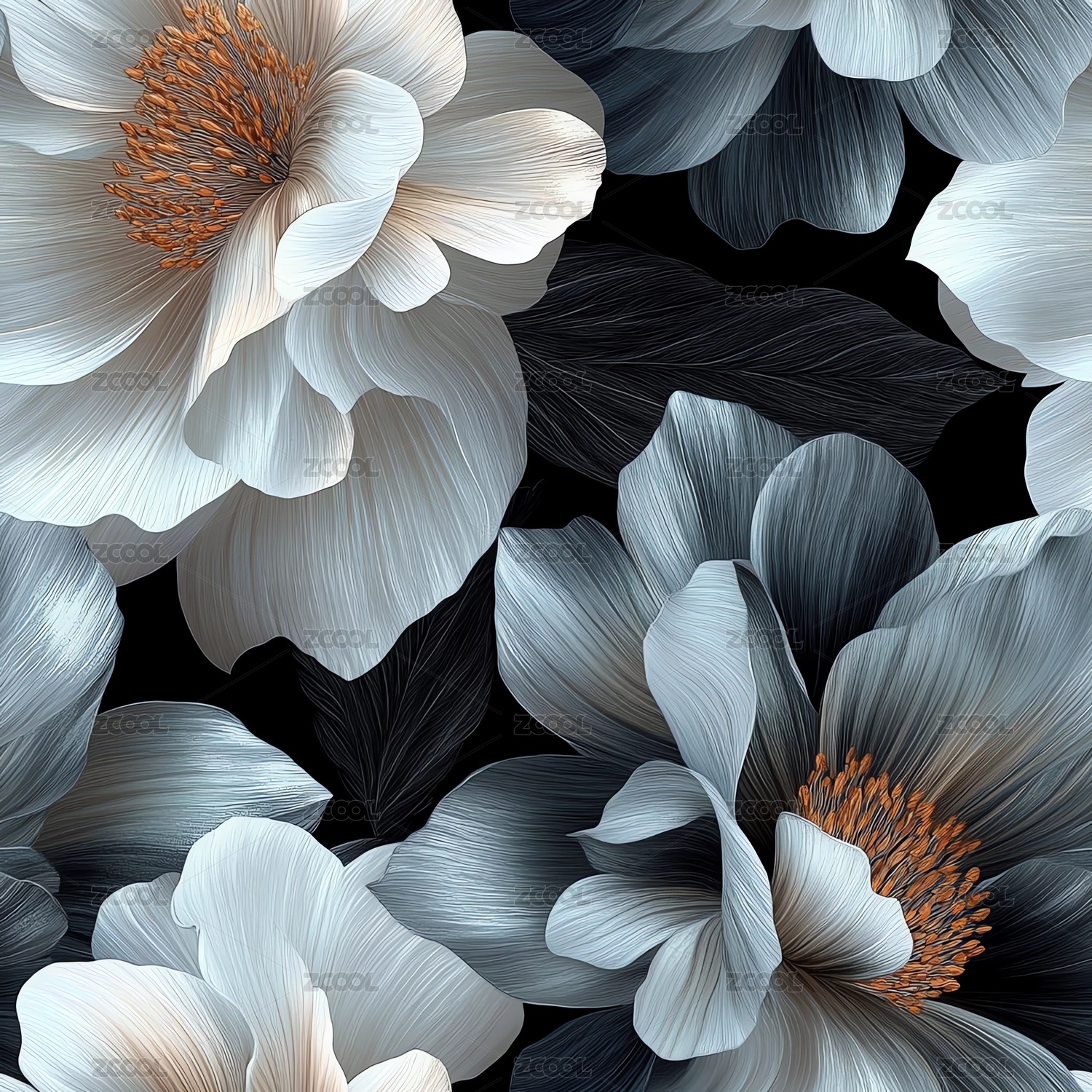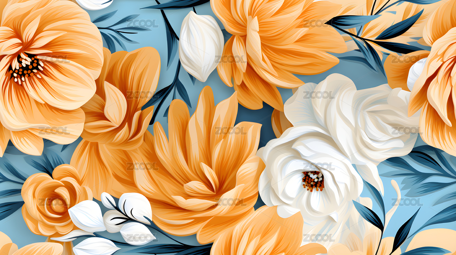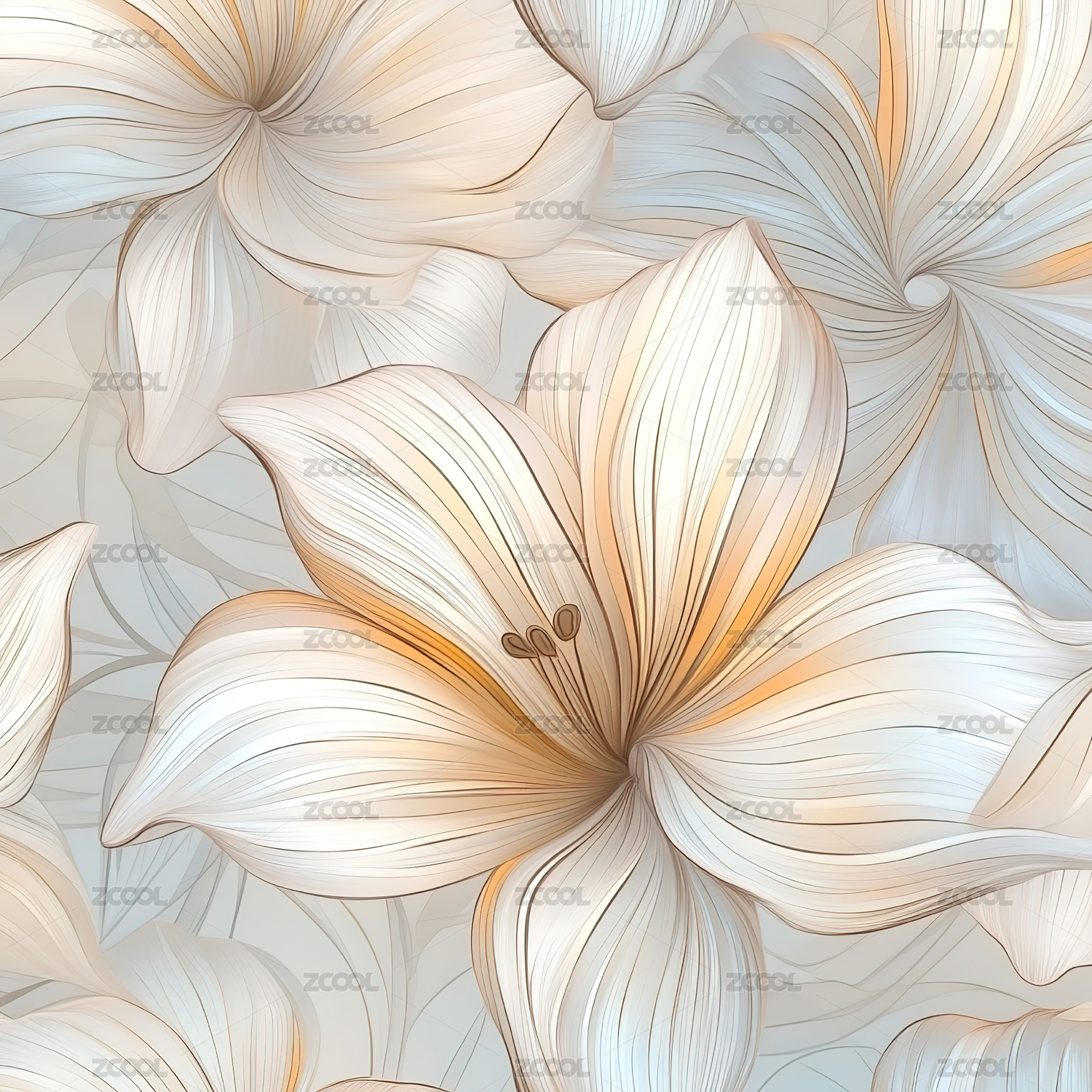 清新典雅带枝条的玉兰四方连续无缝拼接背景
