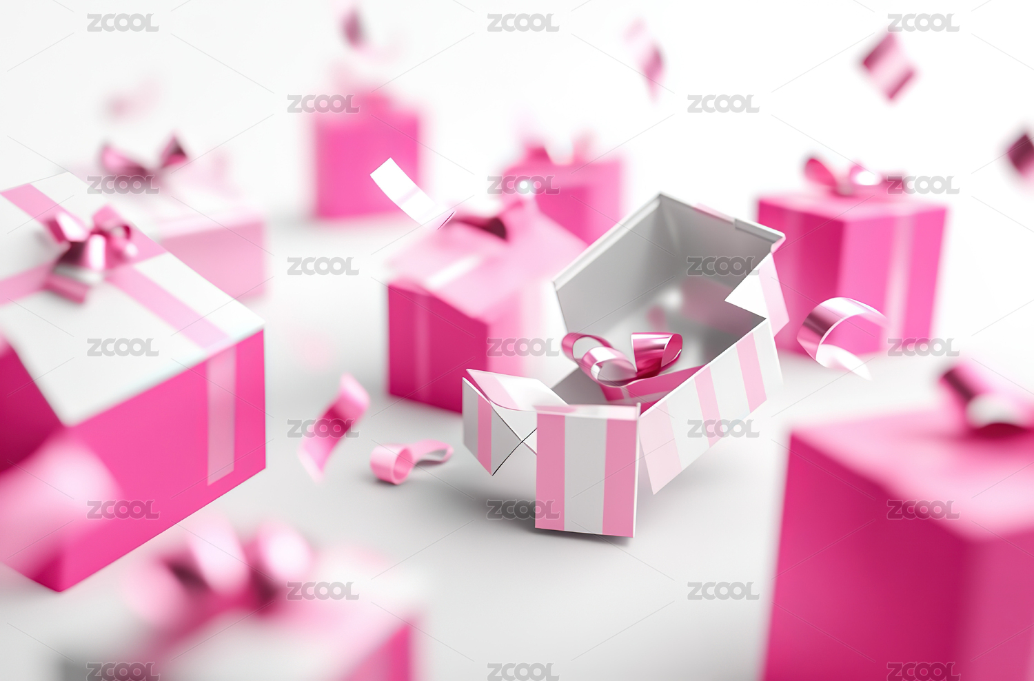 粉色礼盒丝带女性节日礼物3D插画