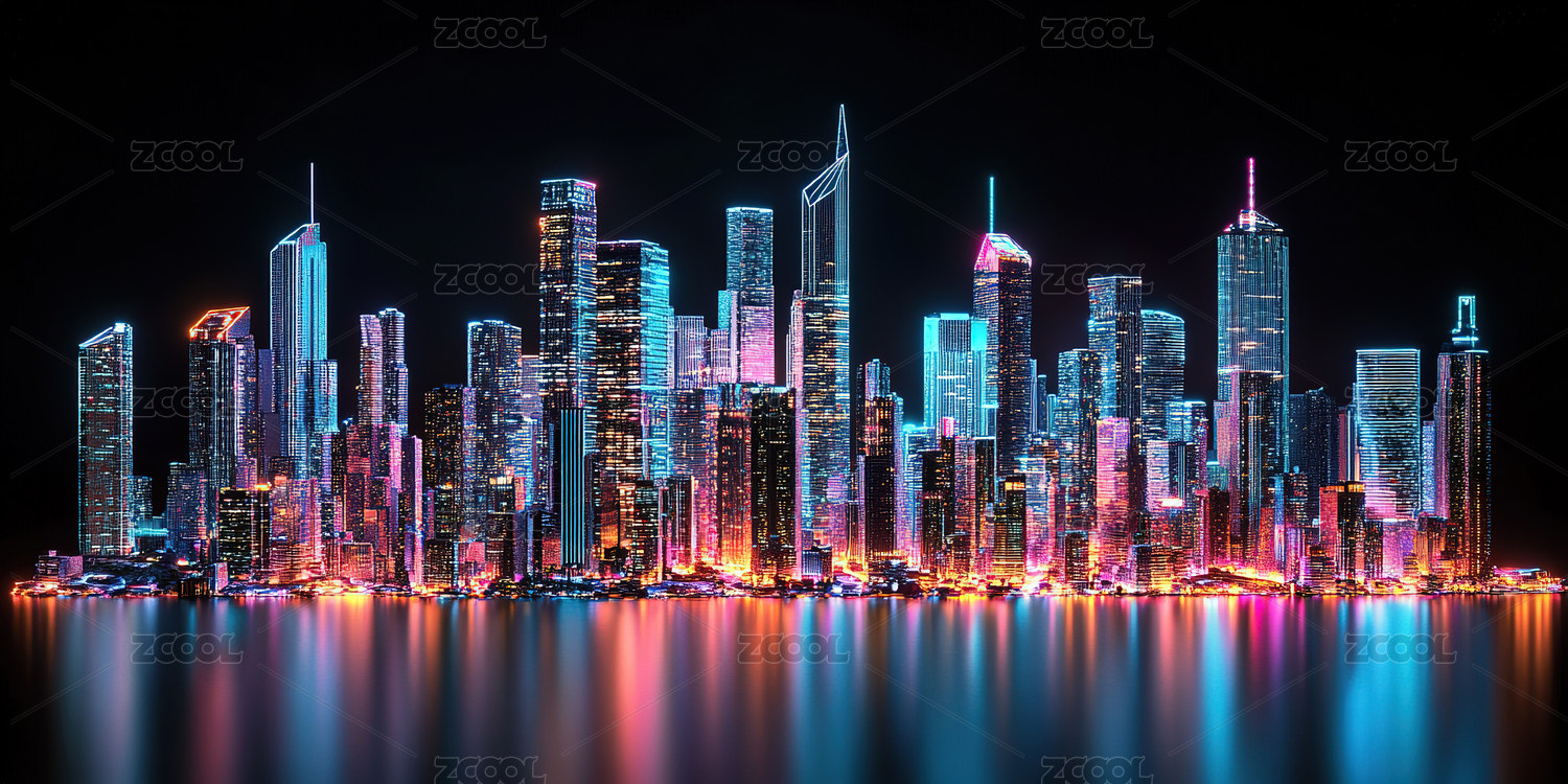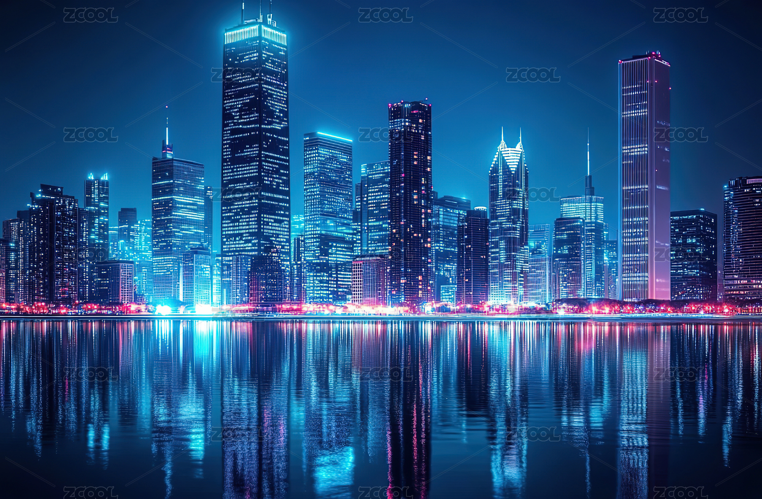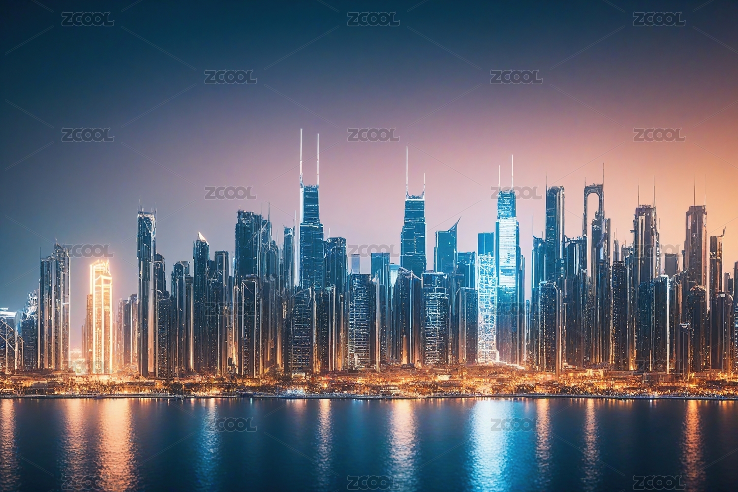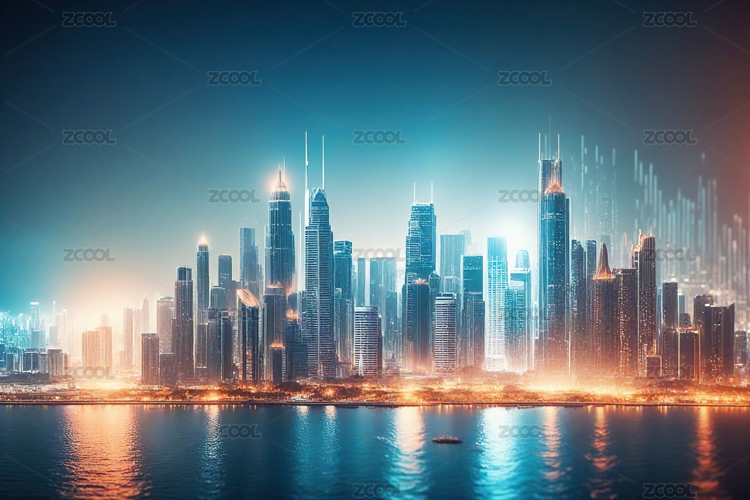 城市天际线,夜晚,城市,建筑,摩天大楼,科学技术,背景,数据,互联网,AI数字艺术
