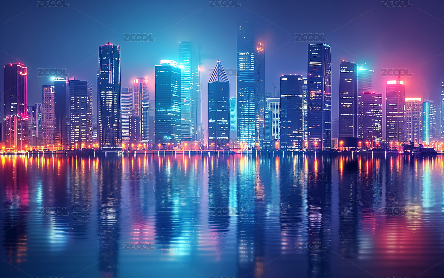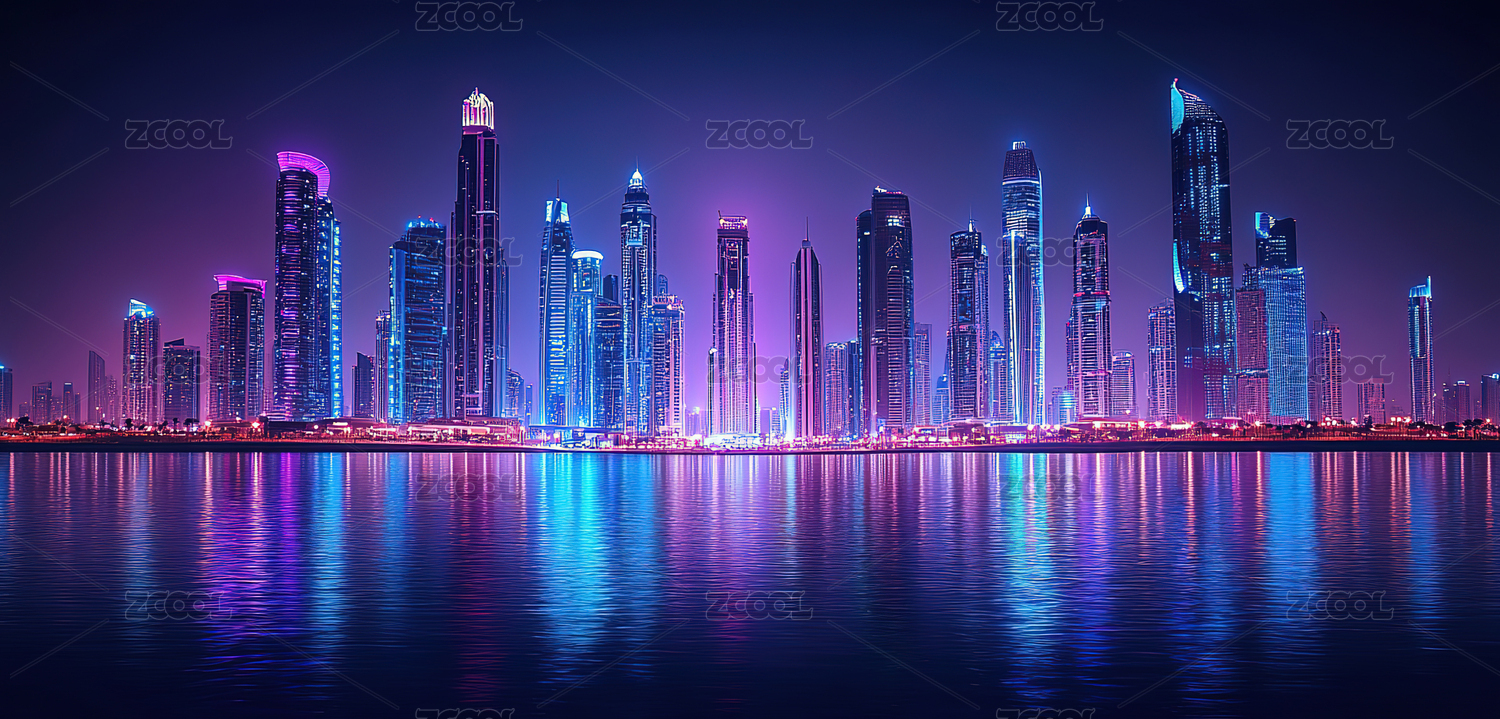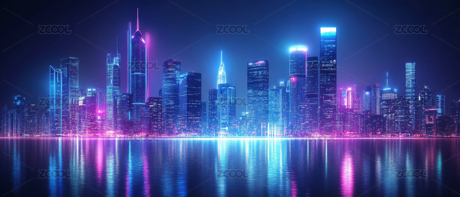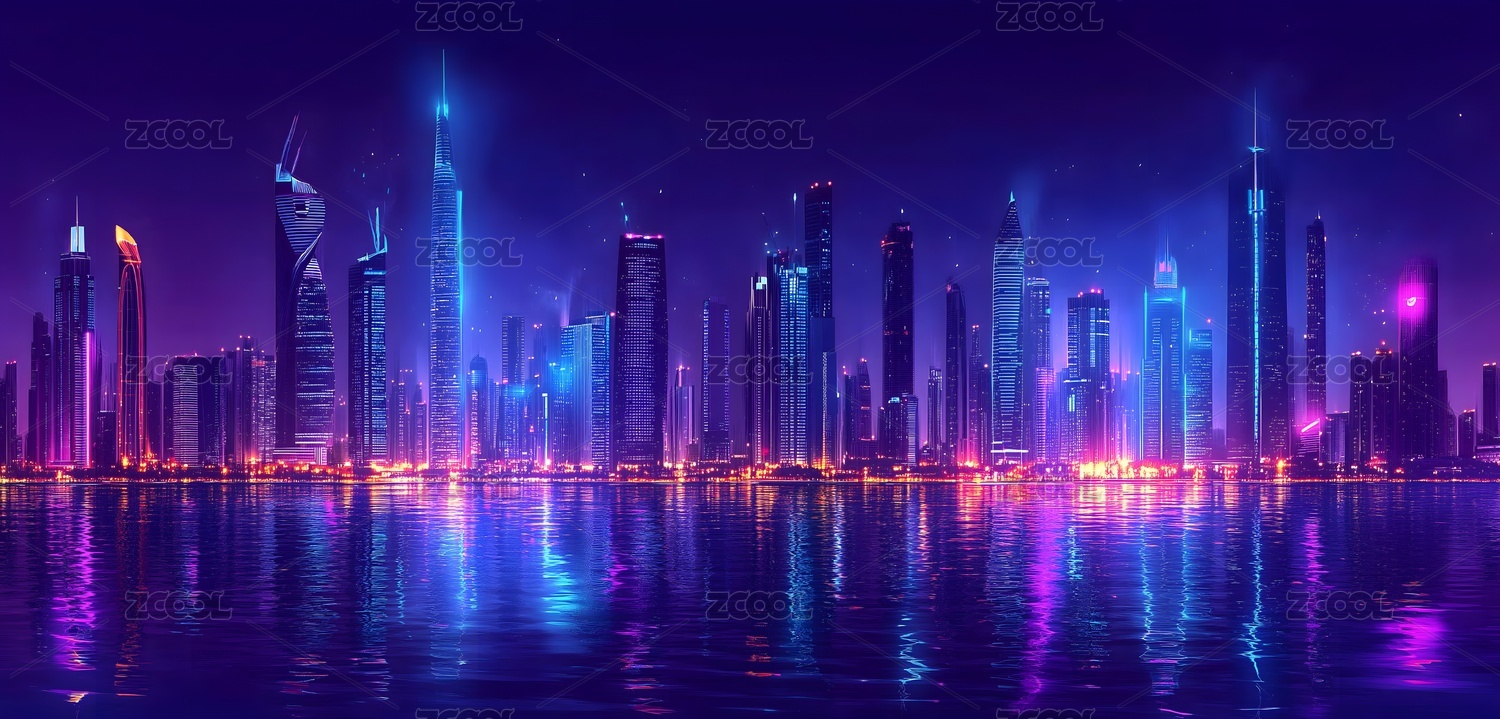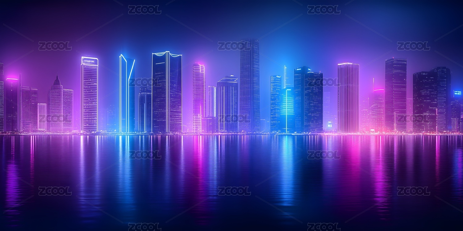城市天际线,夜晚,城市,建筑,摩天大楼,科学技术,背景,数据,互联网,AI数字艺术