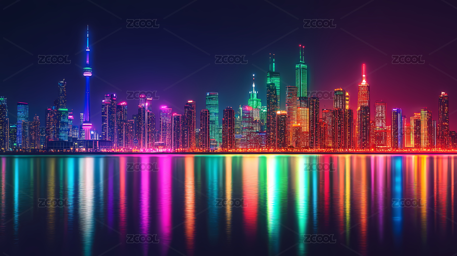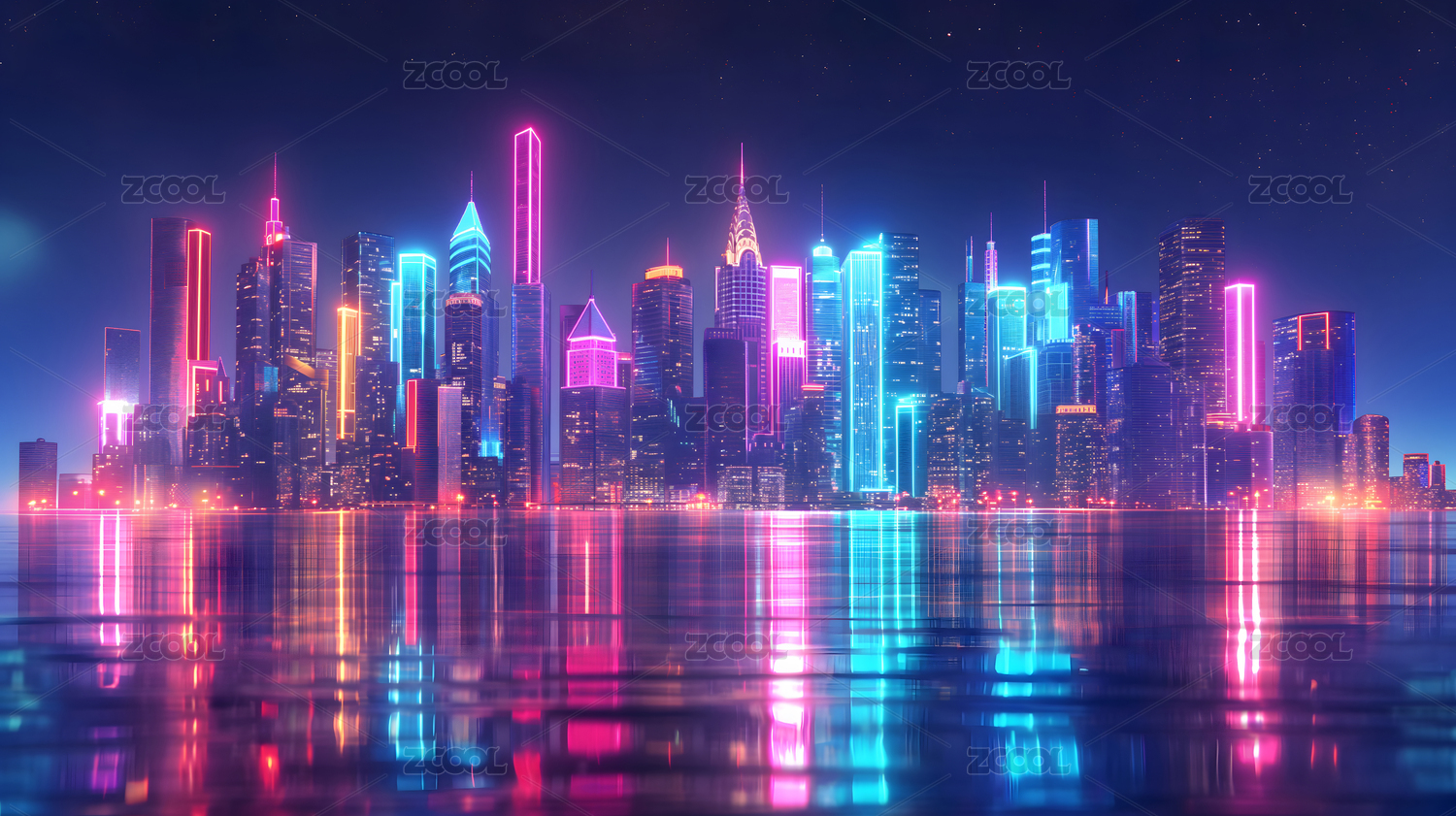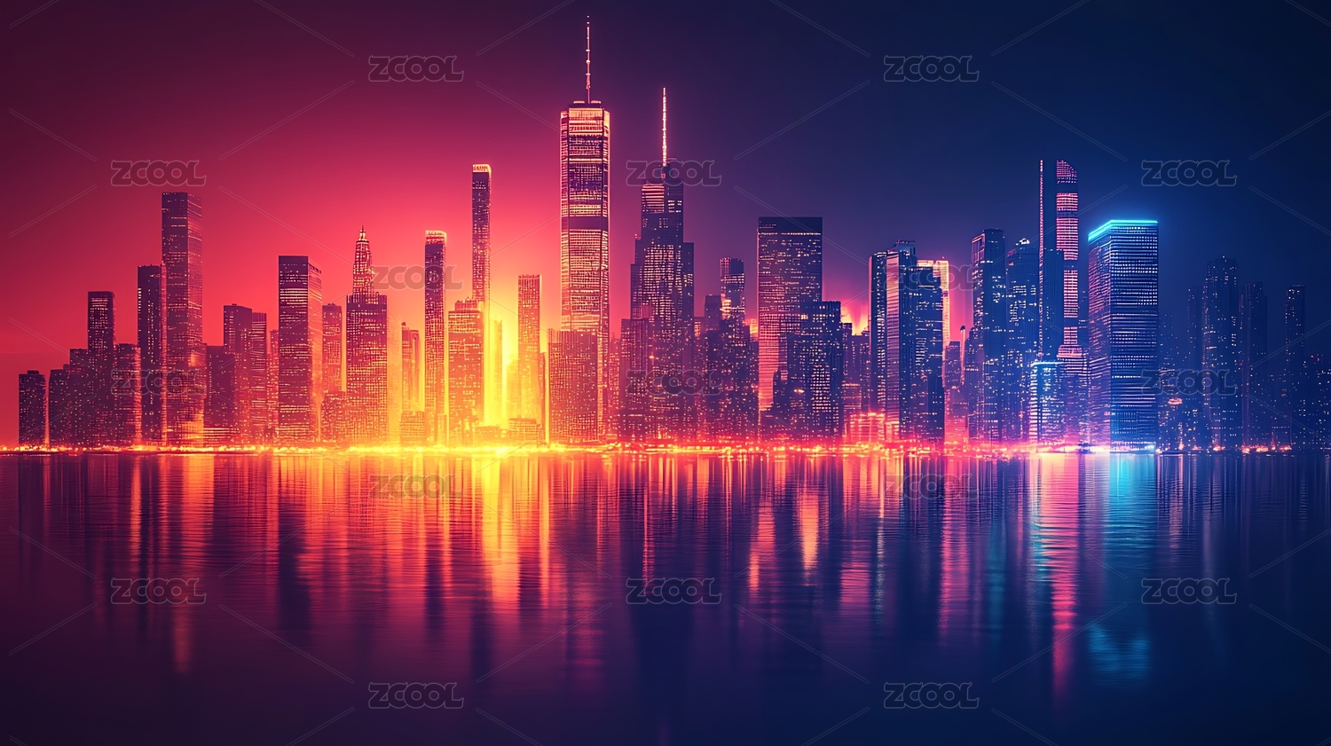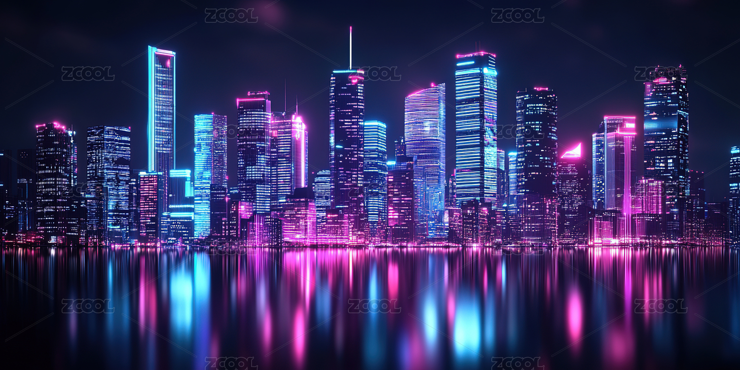 城市天际线,夜晚,城市,建筑,摩天大楼,科学技术,背景,数据,互联网,AI数字艺术
