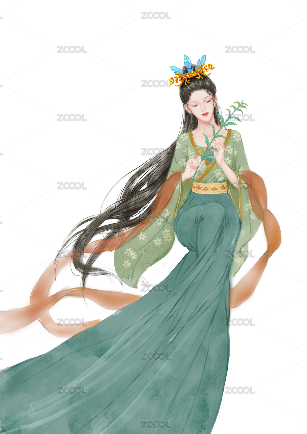 神女献粽端午节人物原创插画