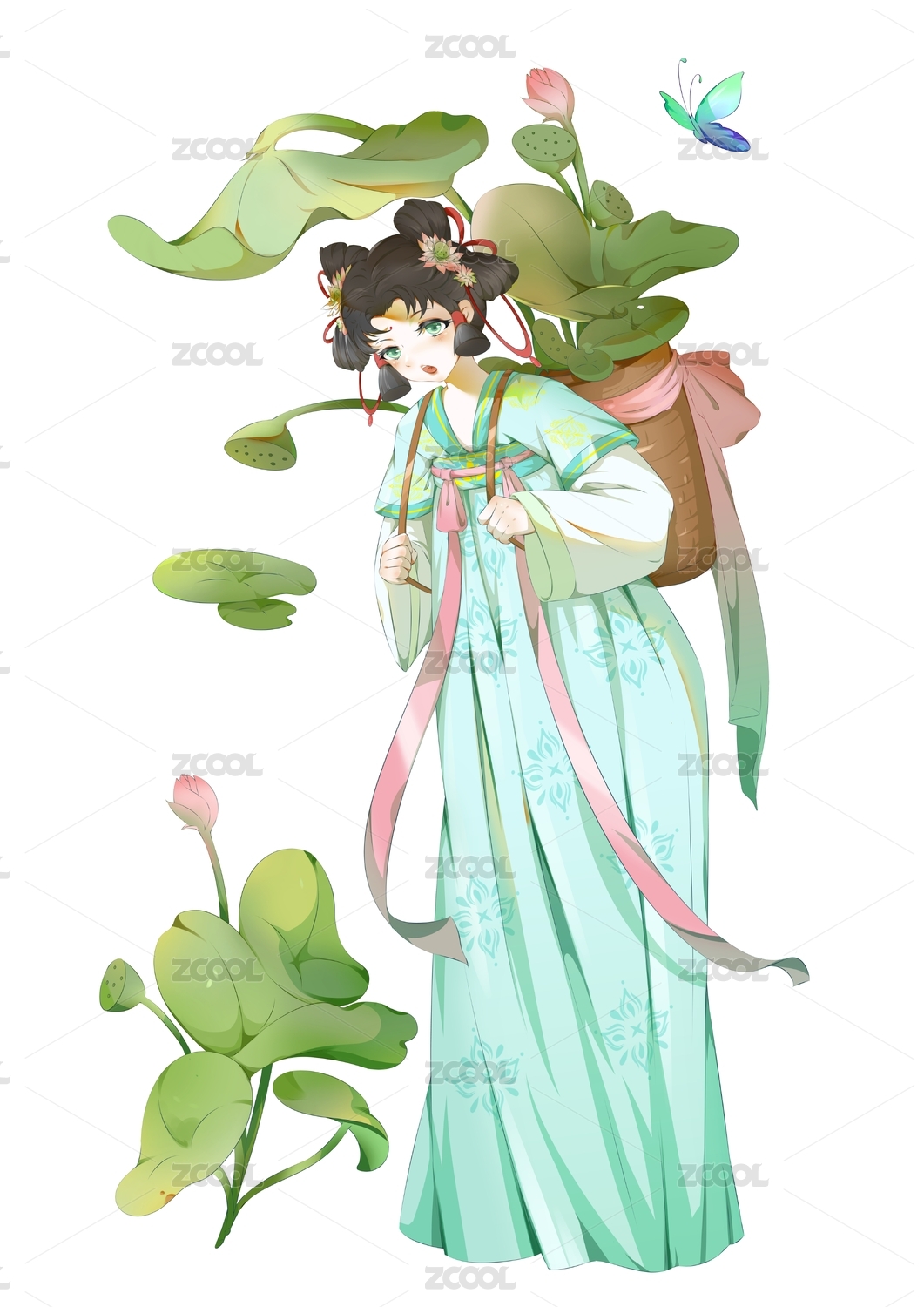 古风国潮汉服美女节日节气花朵荷梅水仙牡丹
