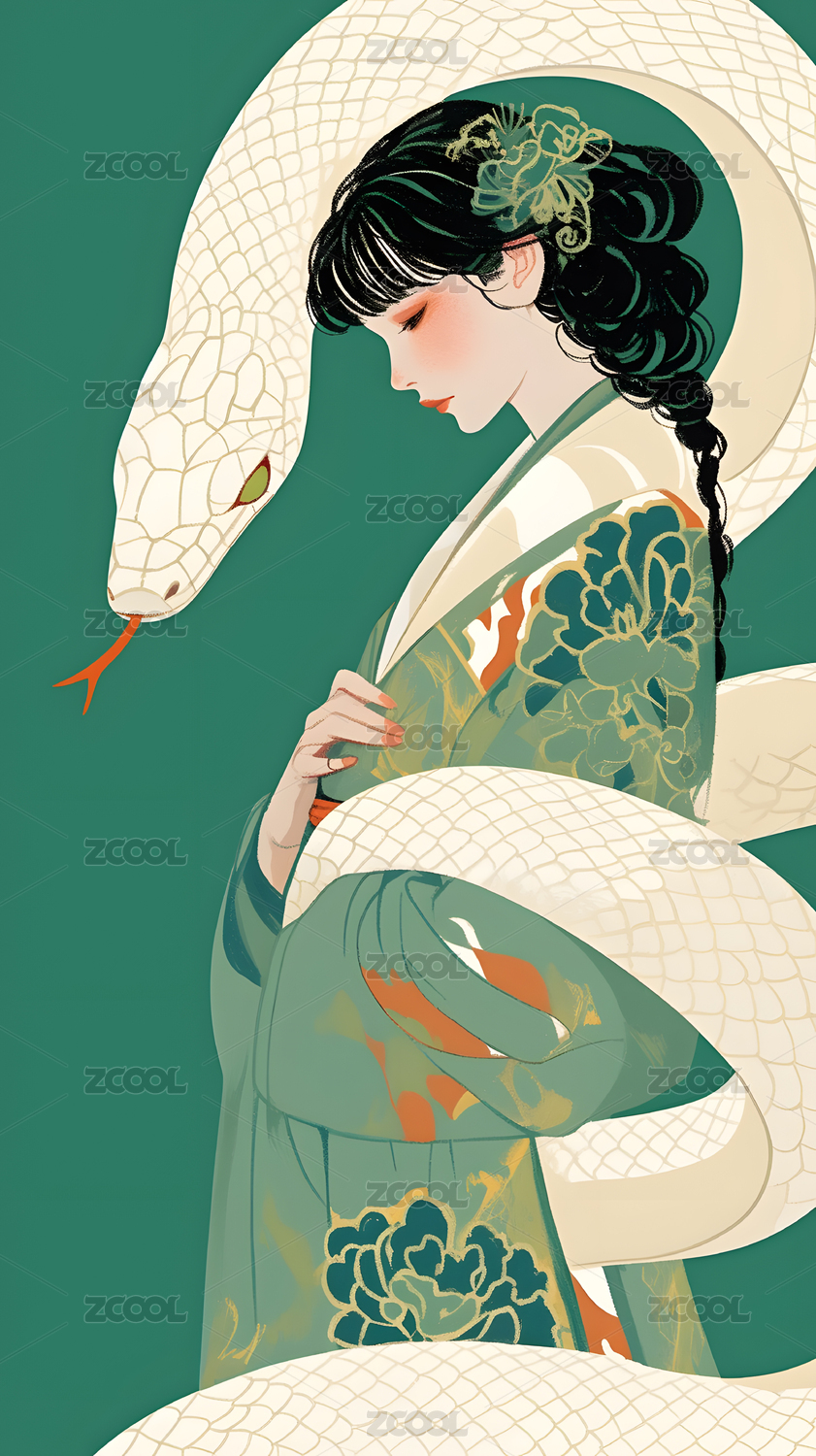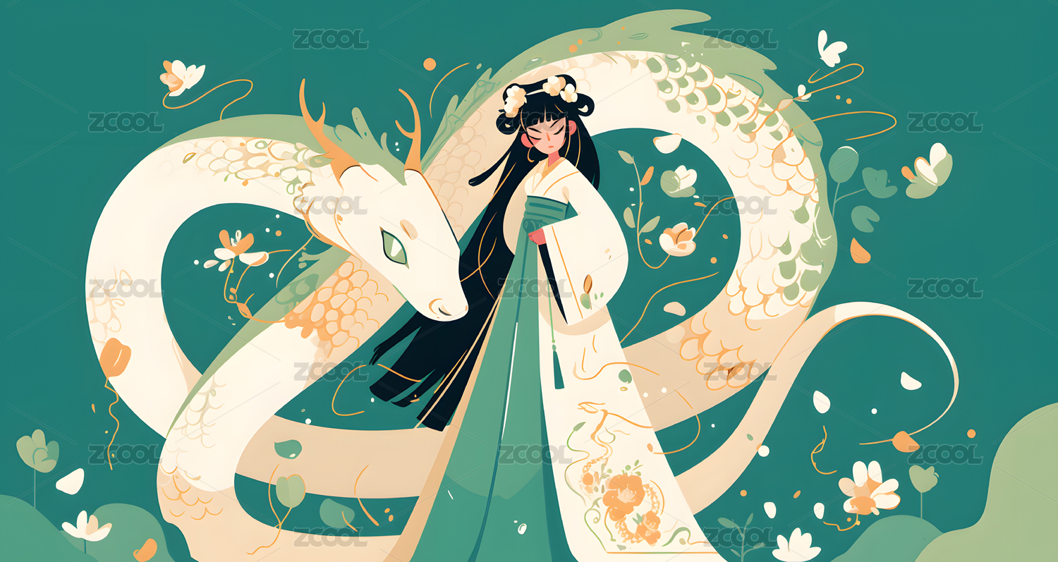 中国风蛇年人物插画