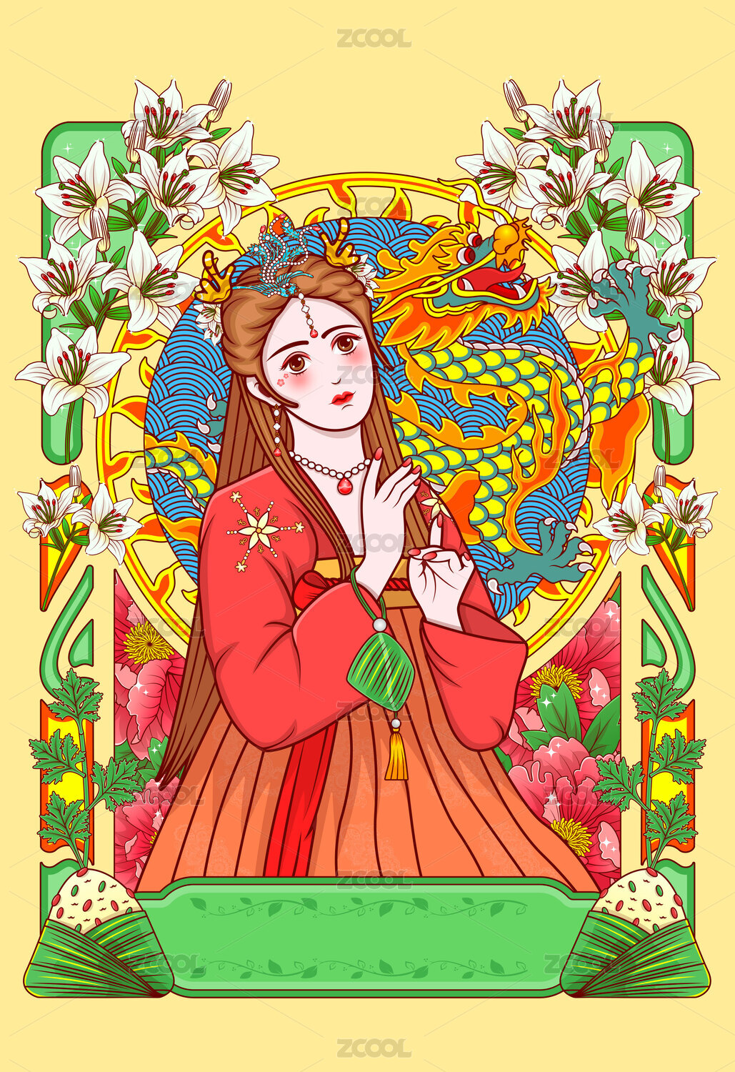古代美女龙粽子端午节