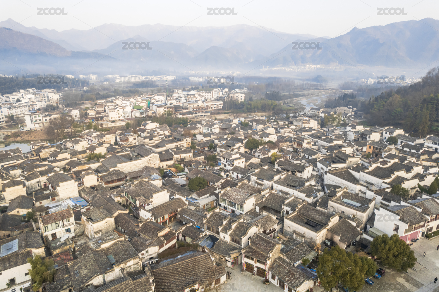 中国浙江省金华兰溪市诸葛八卦村航拍