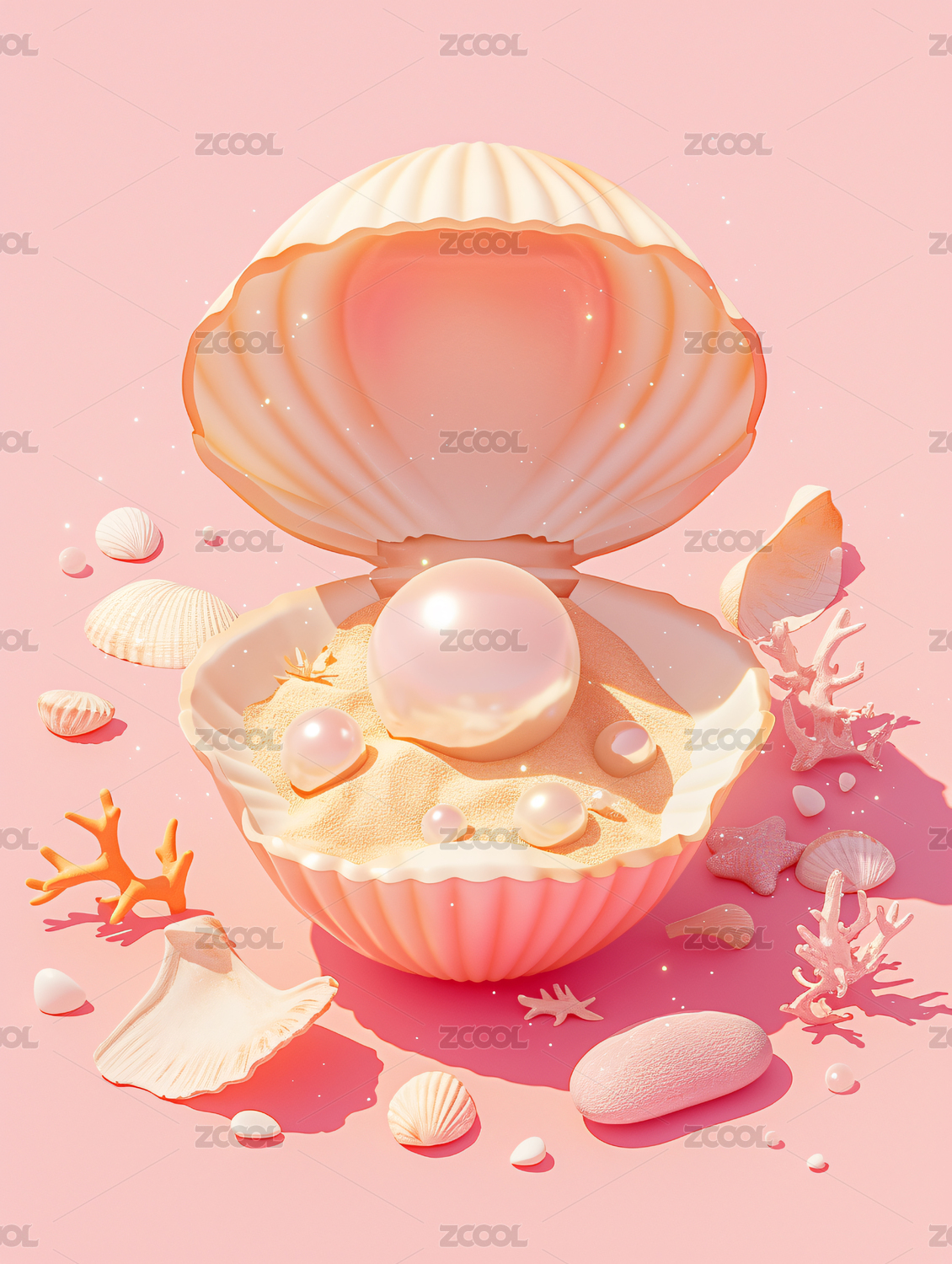 贝壳,海产,海洋,宁静,清新,海滩,粉色