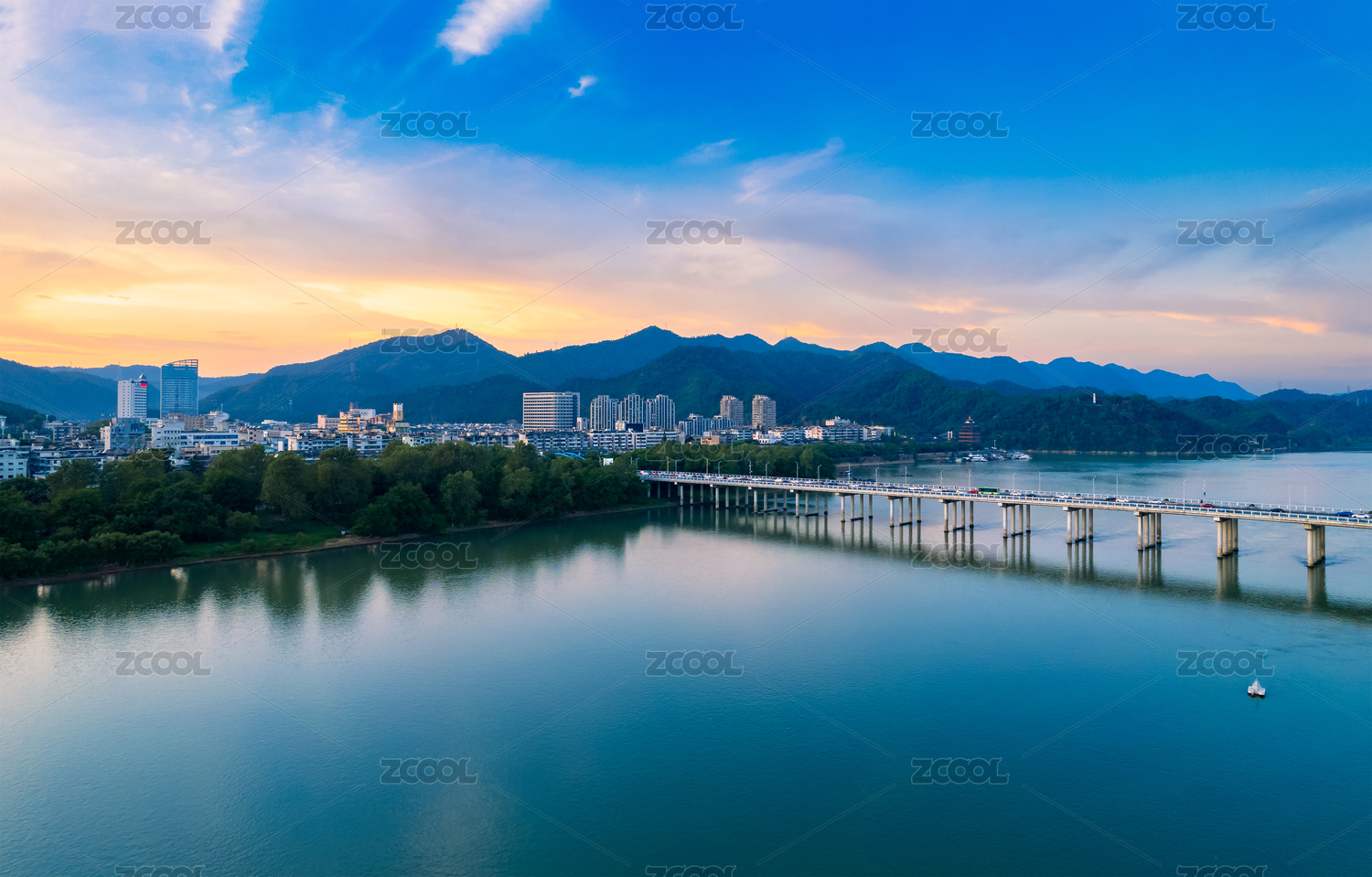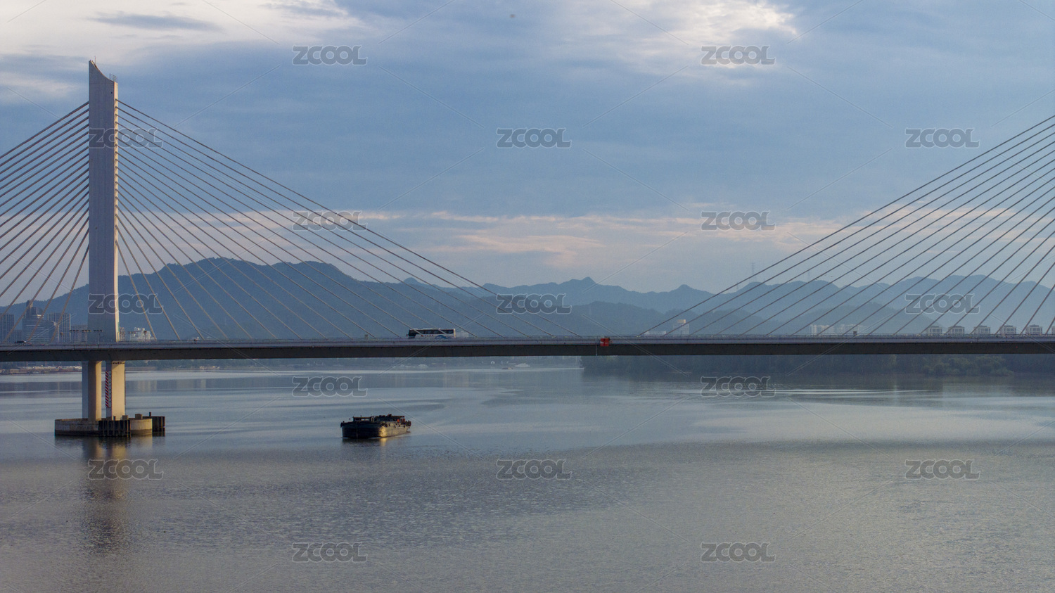浙江省杭州富阳富春大桥富春江晨曦航拍