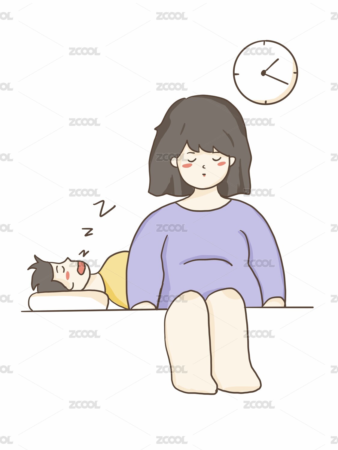 休闲,治愈,清新,简笔画,女孩,女人,插画,生活,描边,孕妇