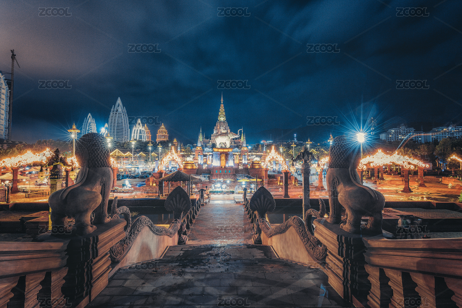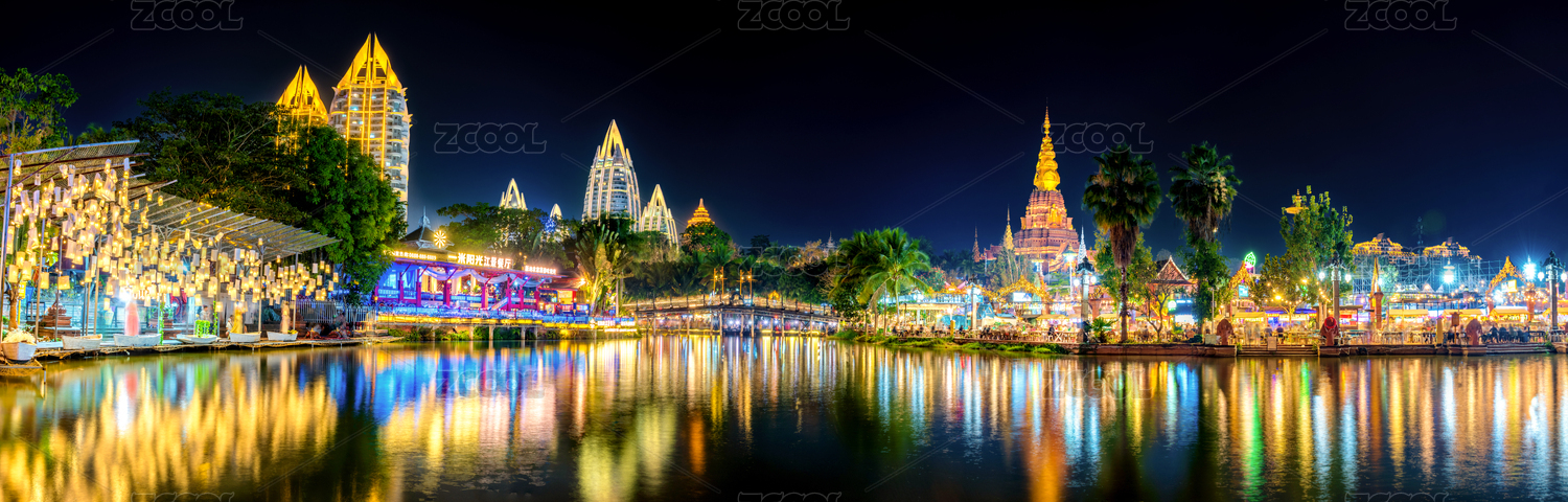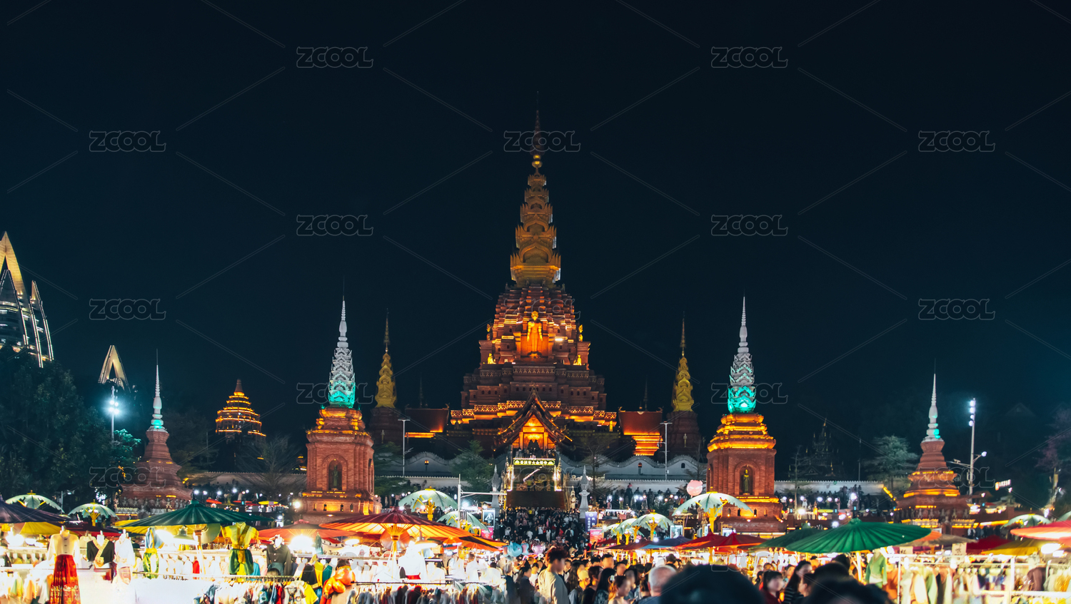 云南西双版纳告庄西双景星光夜市大金塔夜景