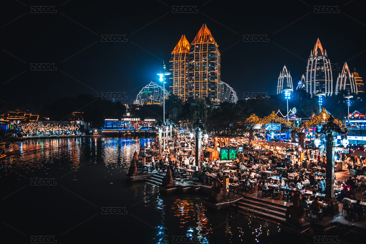 云南西双版纳景洪告庄西双景大金塔星光夜市