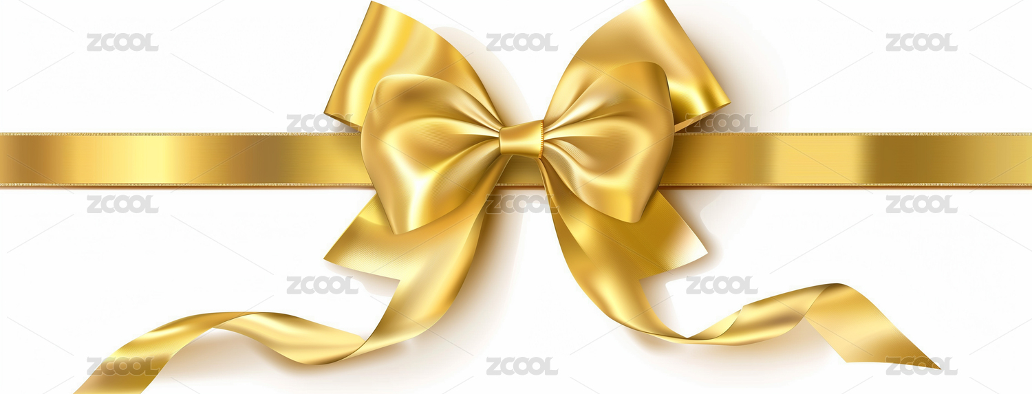 金色蝴蝶结礼花,礼品盒丝带包装元素