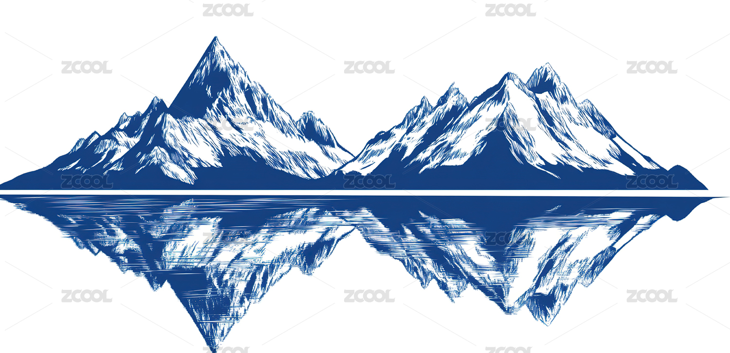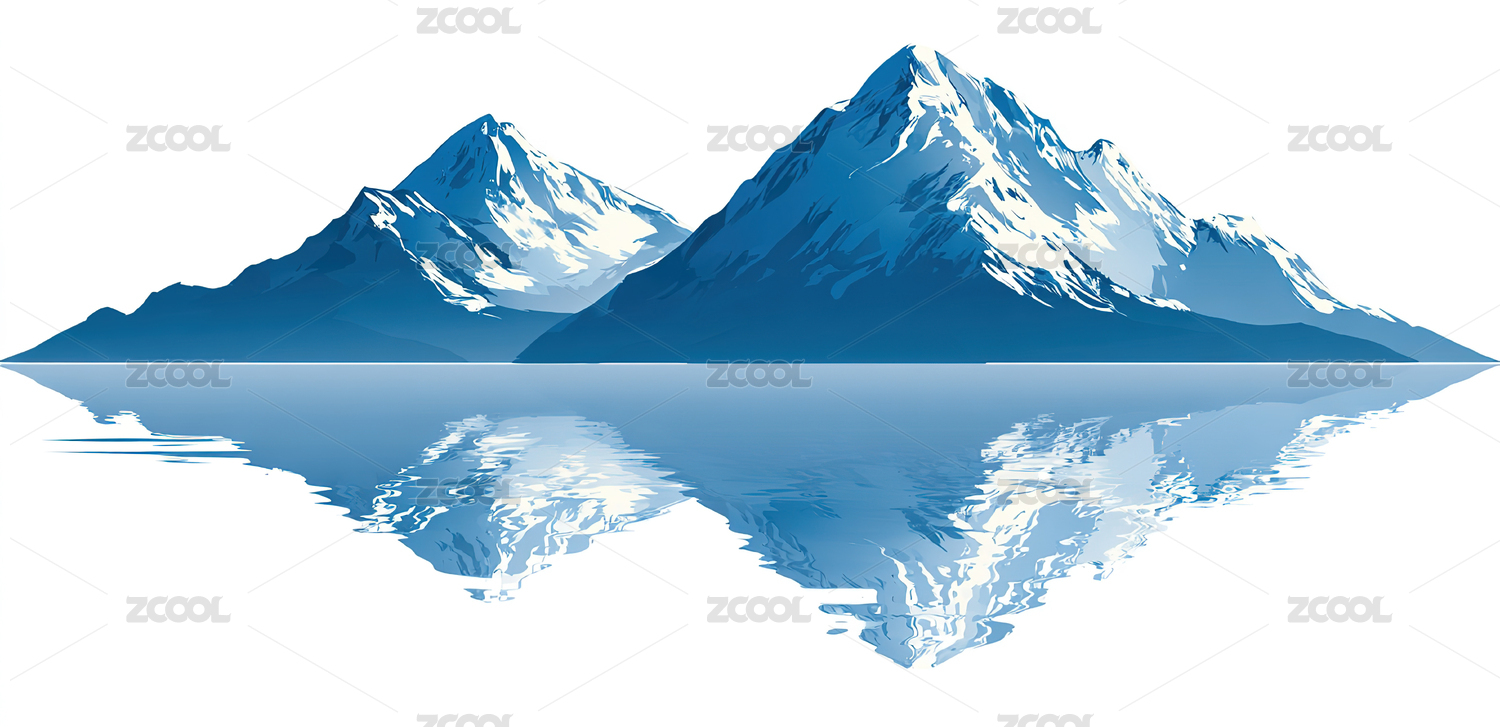 一幅描绘山景的插画画面中有一片宁静的湖