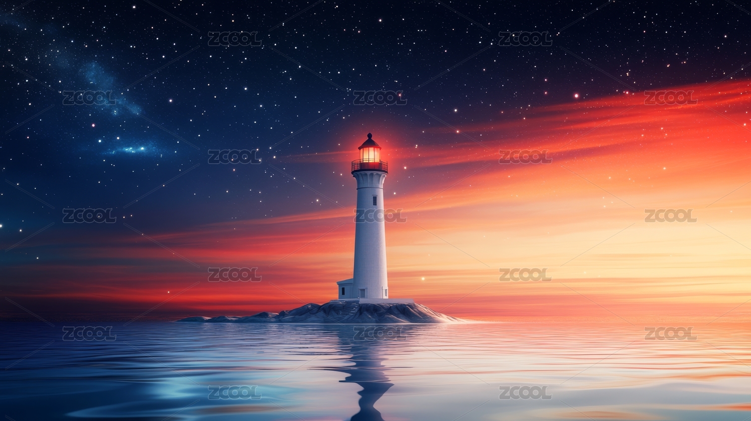 海洋灯塔灯光星河星空银河夜晚梦幻唯美创意