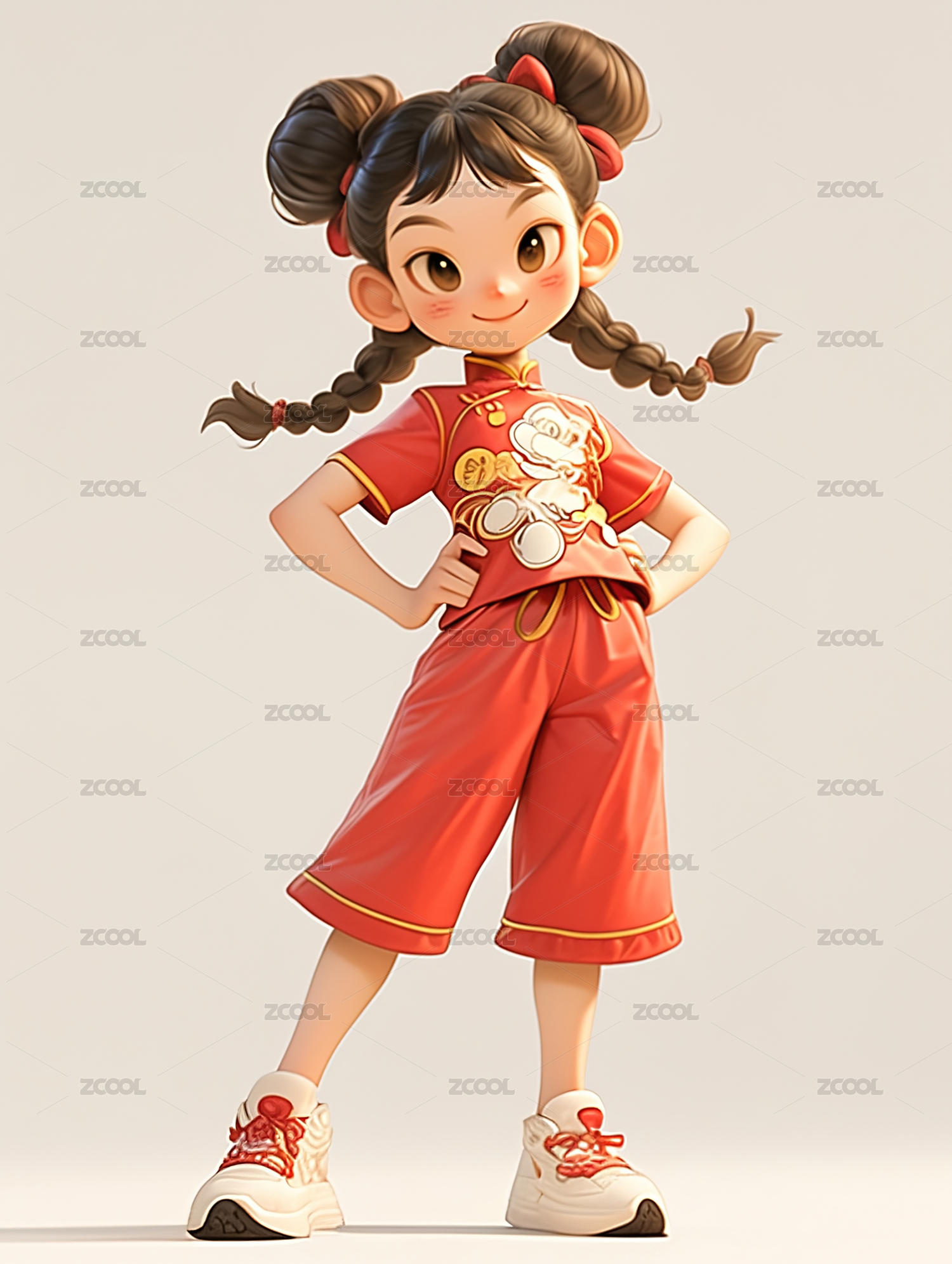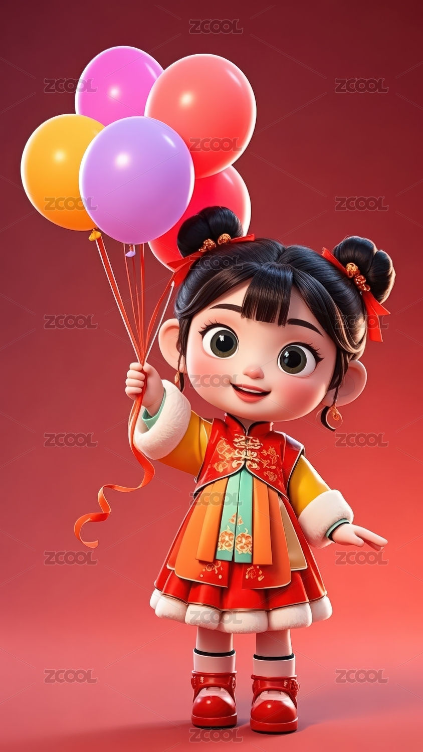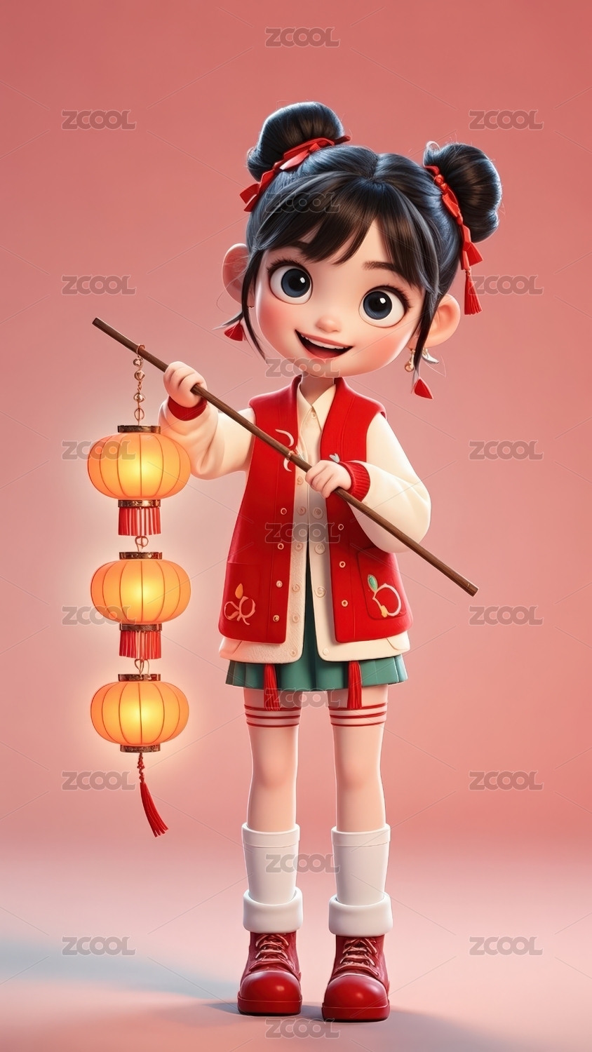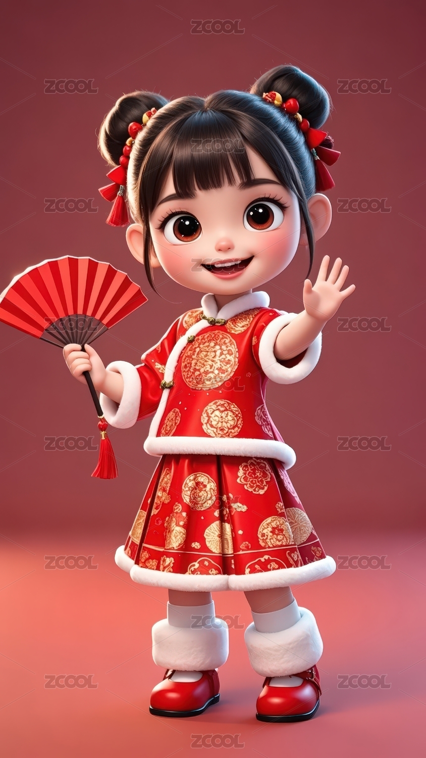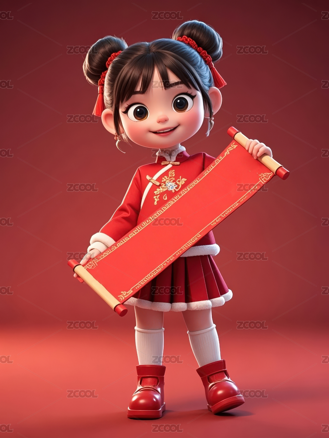 动画, 红色, 喜庆, 节日, 新年, 快乐, 可爱, 3D,卡通, 插图
