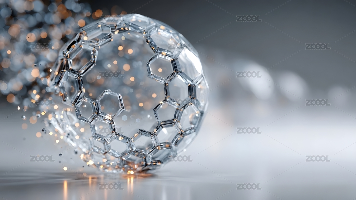 白色六边形石墨烯3D模型的光影之美