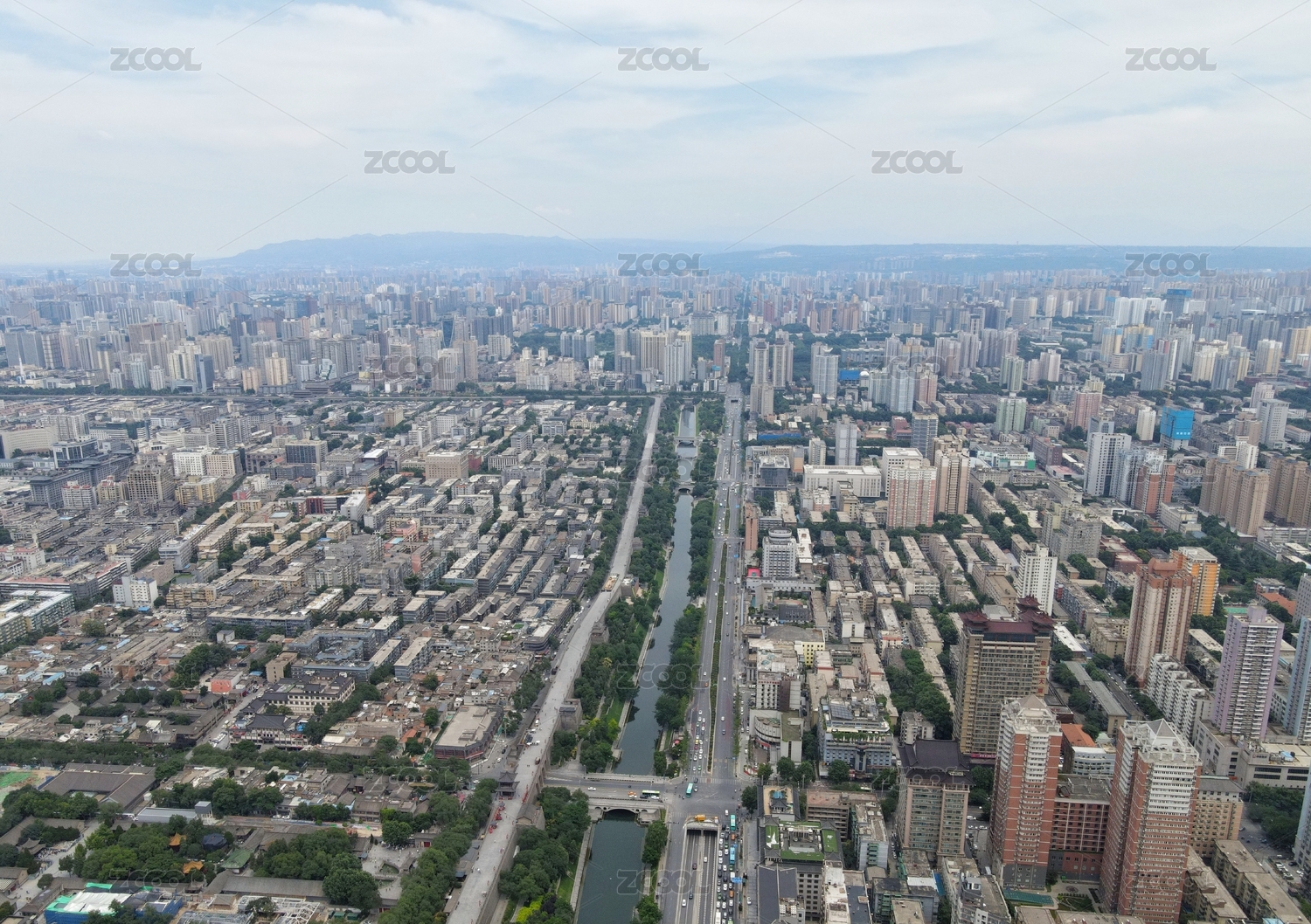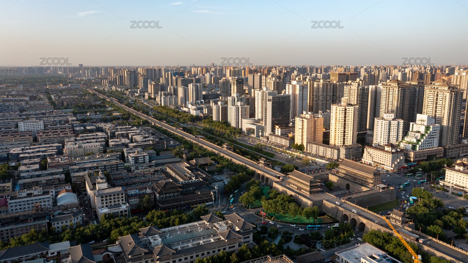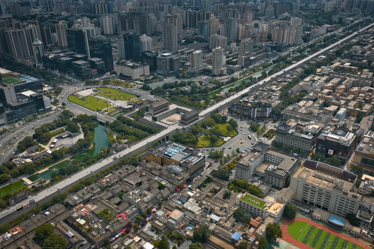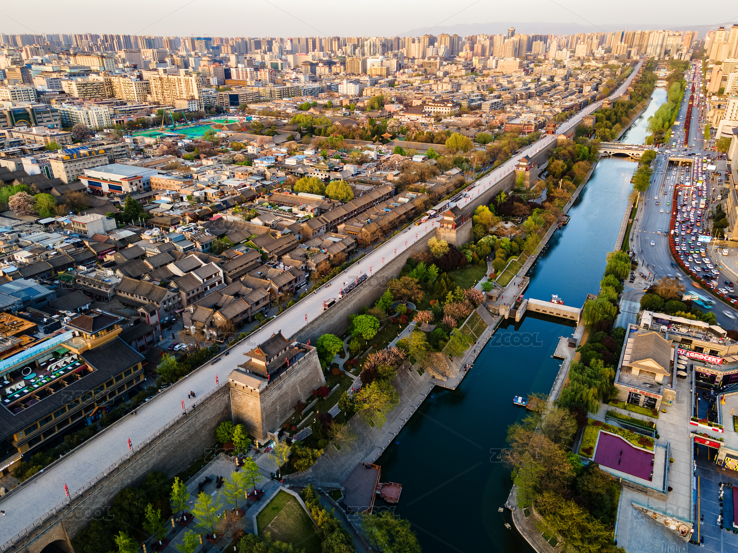 亚洲,东亚,中国,陕西省,西安,城墙,航拍视角,高视角,屋顶,护城河
