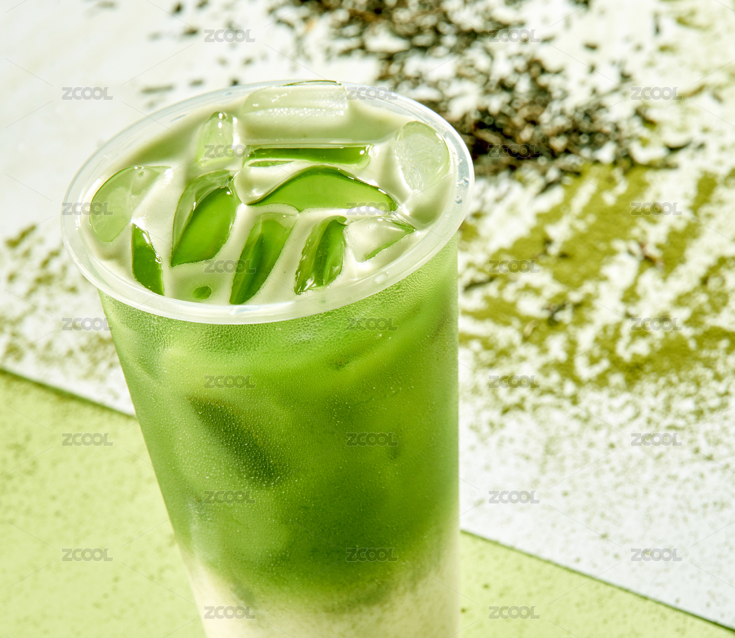 透明杯装抹茶饮品