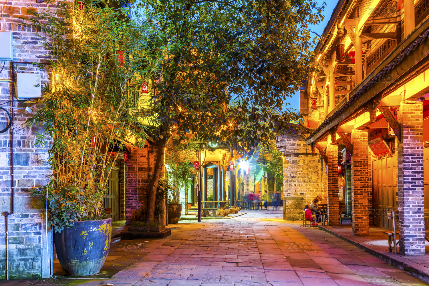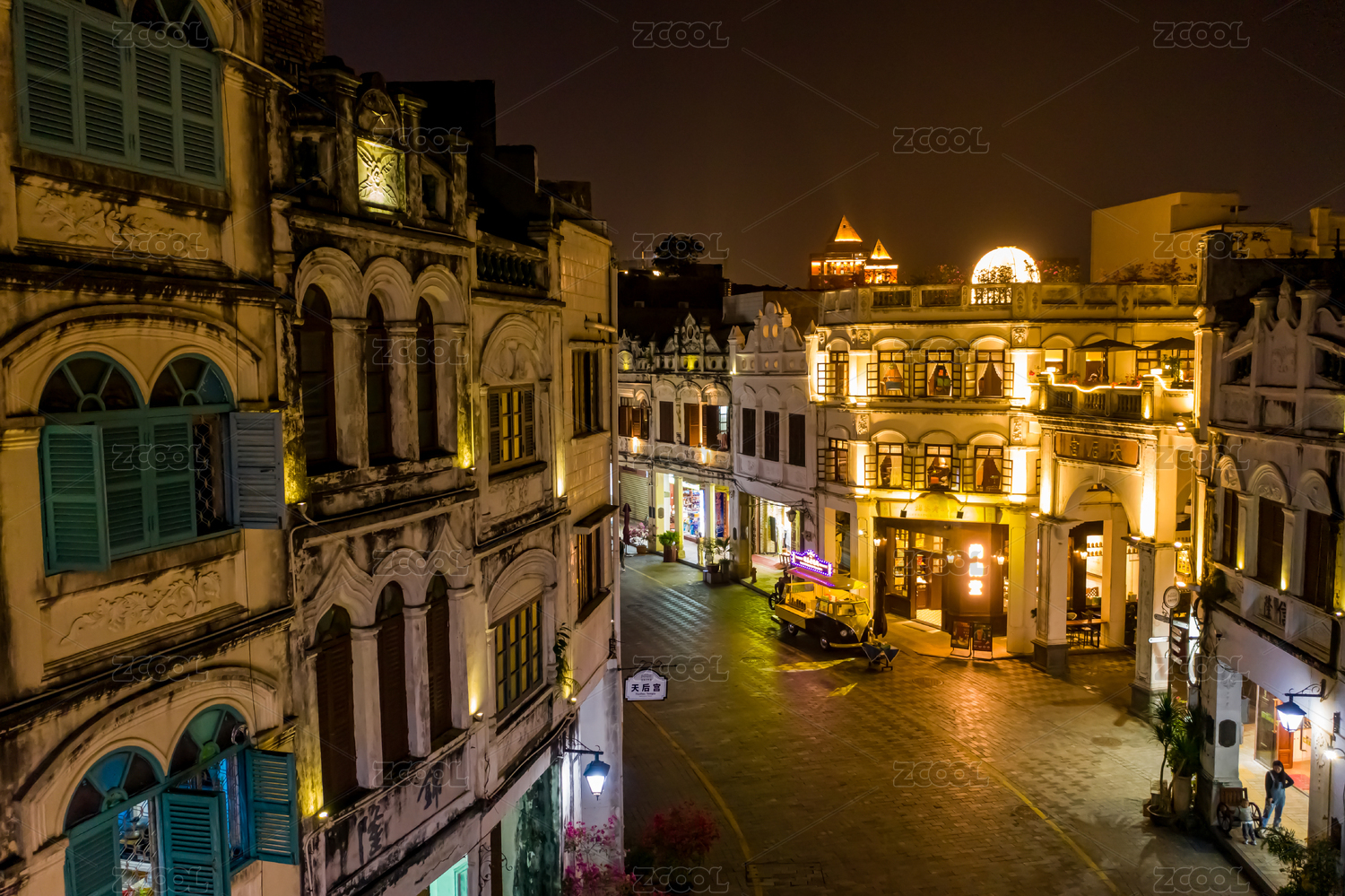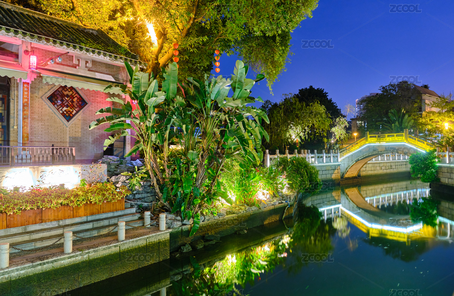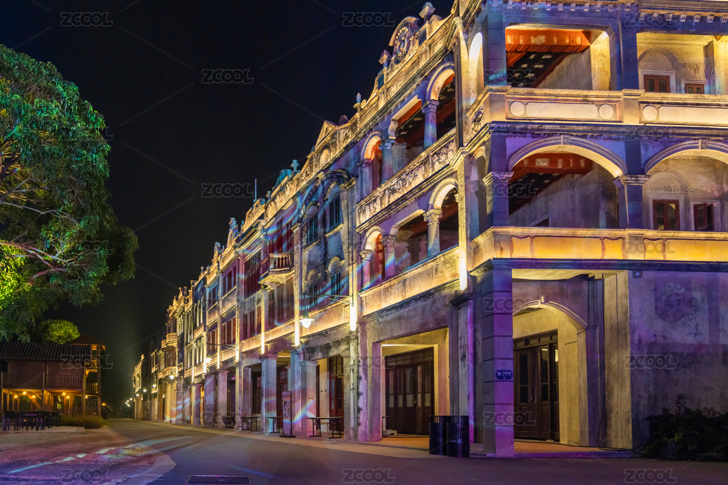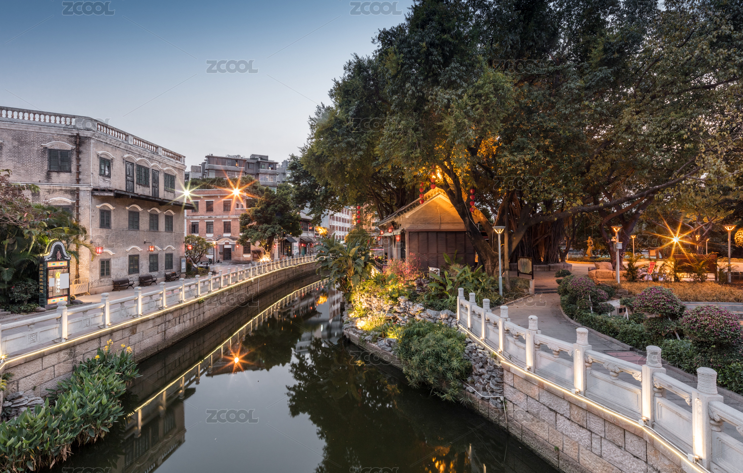 佛山岭南天地中式传统古镇风情商业街区夜景