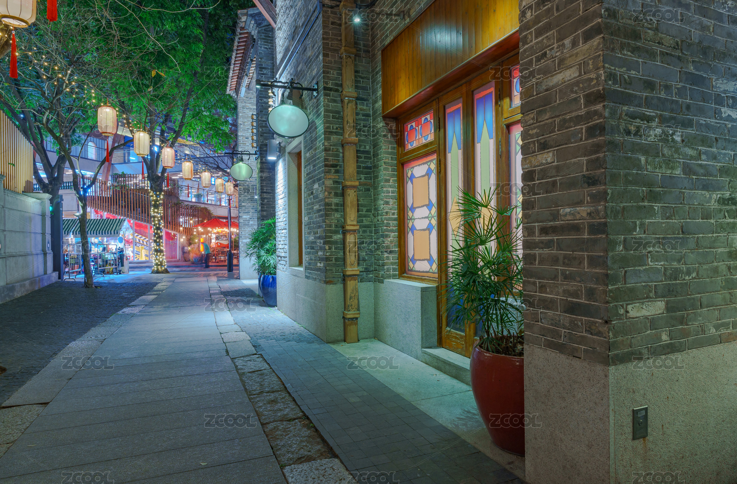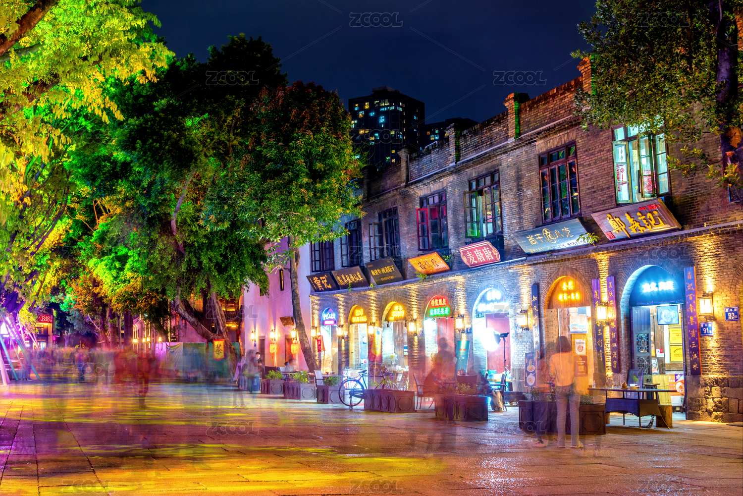 老广州荔枝湾涌旅游景区老城区夜景道路